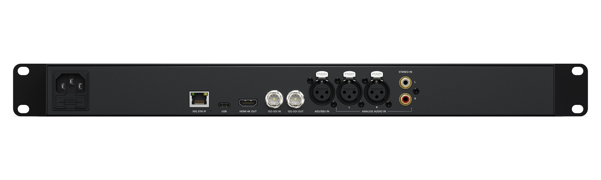 Blackmagic Audio Monitor 12G G3 is a powerful rack mount audio monitoring solution in a compact 1 rack unit size. This new model features 10G Ethernet SMPTE-2110 IP input to allow monitoring of IP broadcast systems without an external converter. Blackmagic Audio Monitor 12G G3 also includes a large audio meter with accurate ballistics, 12G-SDI input for SD, HD and Ultra HD support, balanced analog XLR, HiFi and AES/EBU inputs and HDMI video output for monitoring SDI and IP video sources.