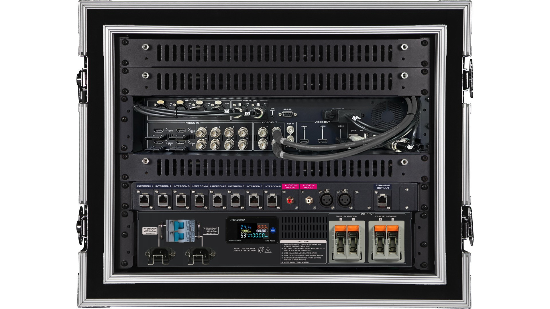 The MS-4000 is a 4K 8-channel mobile production studio designed for the multimedia era, presented in a compact and portable flight case form. It offers a comprehensive video production solution, including video switching, communication, recording, waveform vector monitoring, screen integration, and more.