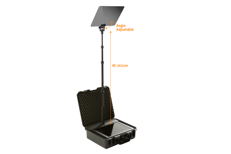 TP-800 uses high quality mirror-reflective glass, which looks like an ordinary piece of clear glass from the audience"s perspective, but perfectly reflects the prepared script displayed on the LCD screen below the Teleprompter.