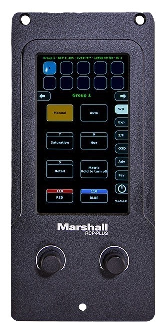 The new RCP-PLUS has an intelligent menu touchscreen interface system that can connect VISCA over IP, Visca over RS485 and powered by PoE or 12VDC. This unit can also have favorites settings and save features for easy usability. The fine-tuned finger dials enable precise adjustments for white balance, red/blue gain, gamma, black level, brightness, exposure, iris, shutter, resolution, frame rate, and more, and they can be adjusted simultaneously or one at a time. The RCP-PLUS comes pre-programmed with control protocols for all Marshall Cameras, including Marshall's POV cameras, varifocal cameras, zoom cameras, PTZ cameras, and other popular non-Marshall branded cameras on the market.