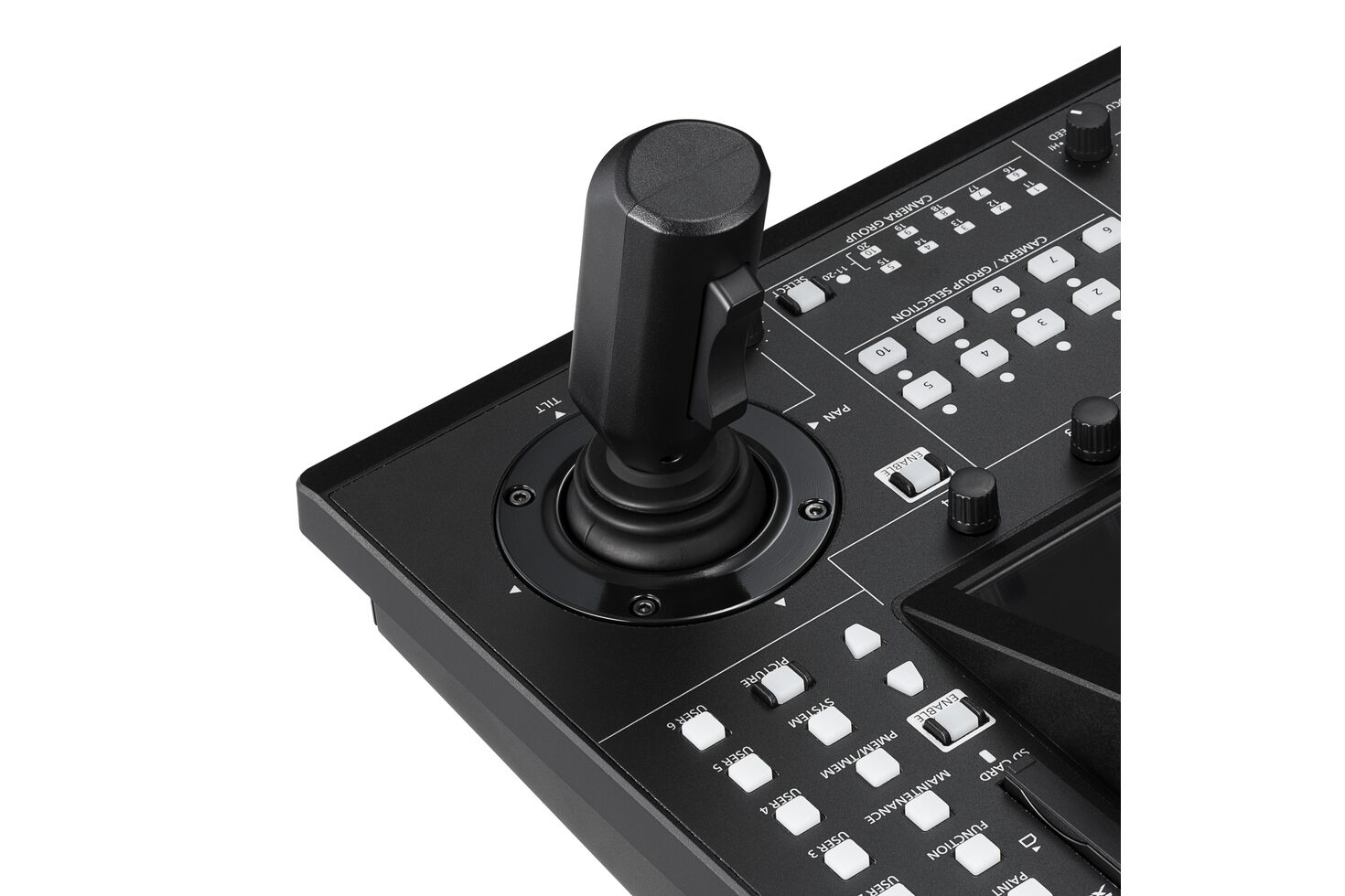 A seesaw lever mounted on the joystick manages pan and tilt operations for zoom and focus control and intuitive single-handed operation.