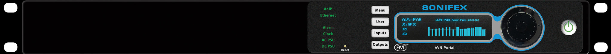 The AVN-Portal series is a group of three powerful audio mix engine interfaces (AVN-PA8, AVN-PD8 & AVN-PM8) capable of audio routing, metering and equalisation. They have both physical audio I/O and AES67 stream I/O and can mix and route freely from any input to any output, useful for a multitude of applications.