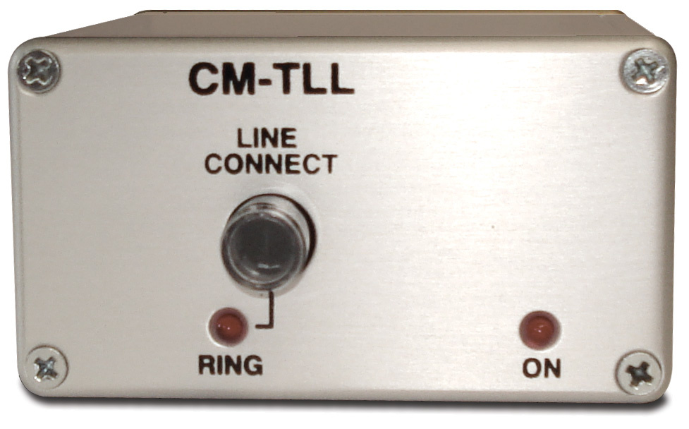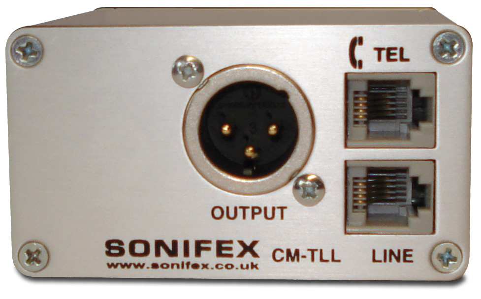 The CM-TLL provides a low-loss interface to receive audio from a telephone line. The line-powered unit is compatible with all analogue direct exchange lines and includes an LED indication of incoming calls. The unit is intended to be used with an earpiece amplifier to receive an audio feed by telephone from a studio.