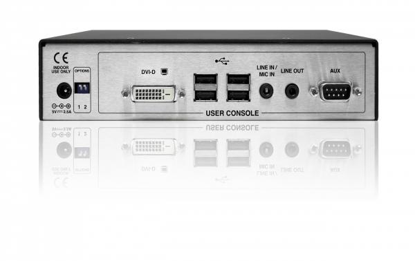 Distribution of DVI-D, USB, audio and bidirectional RS232 across up to 10km