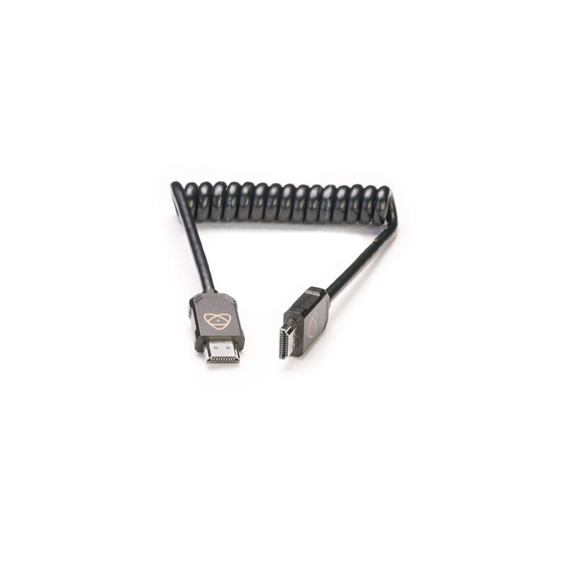 The ATOM4K60C5 is a 30-60cm HDMI (Type-A) Male to HDMI (Type-A) Male Coiled Cable that supports 4K video at up to 60 fps and HD video at up to 240 fps via the HDMI 2.0 signals between devices and components.