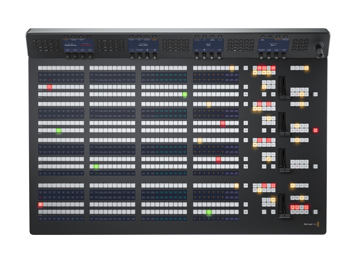 This massive model is big enough to perfectly match the features on the ATEM Constellation switcher! It features 4 M/E rows with 40 input buttons per row and 4 independent system control LCDs for each row. This massive panel includes 24 LCD's for custom labeling of every button on every row!