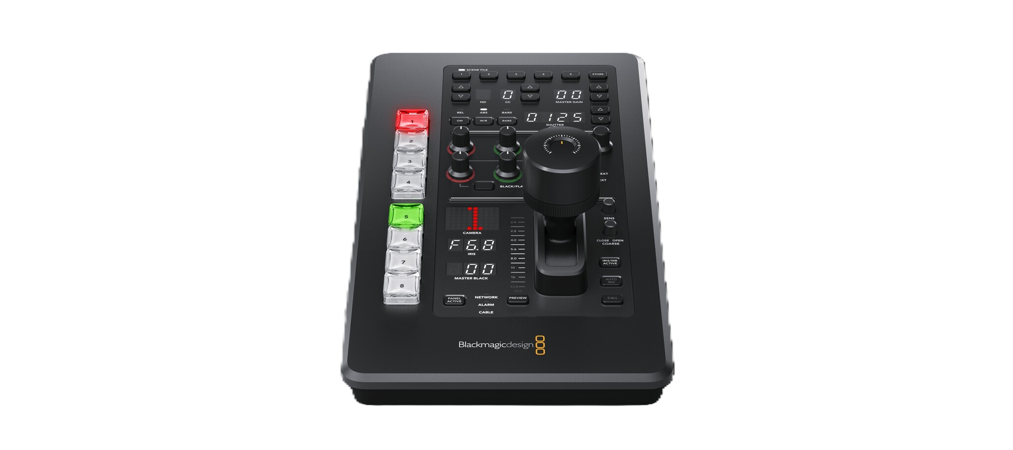 ATEM Micro Camera Panel is a portable camera panel with high end broadcast CCU controls. Control iris, pedestal, shutter, white balance, master gain, RGB balance and more for up to 8 cameras from a single panel. Connects to ATEM Software Control via Bluetooth or USB-C.