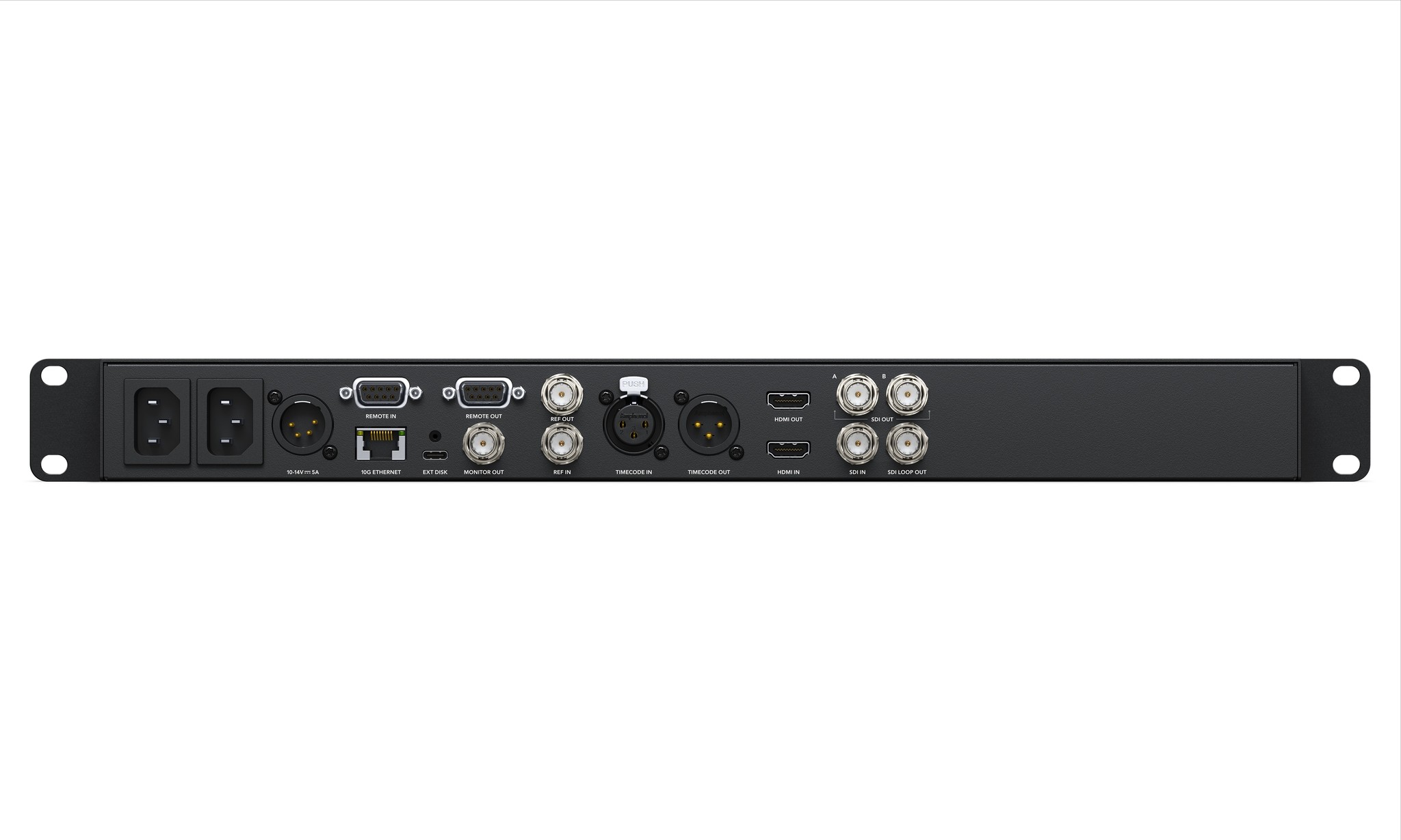 For extreme power, the HyperDeck Studio 4K Pro has all the features of the HD models, combined with incredible processing for working in Ultra HD. This model's SDI has been upgraded to full 12G-SDI with a loop 12G-SDI output. The two SDI outputs are both 12G-SDI so you can play ProRes 4444 files for true Ultra HD fill and key out. The HDMI connections and the ProRes and DNx file formats all switch between SD, HD and Ultra HD television standards. Like the other models, H.264 is included for SD and HD, but then switches to H.265 when recording in Ultra HD. Even the networking has been upgraded to 10G Ethernet for incredible speed! You also get 2 redundant AC power supplies!