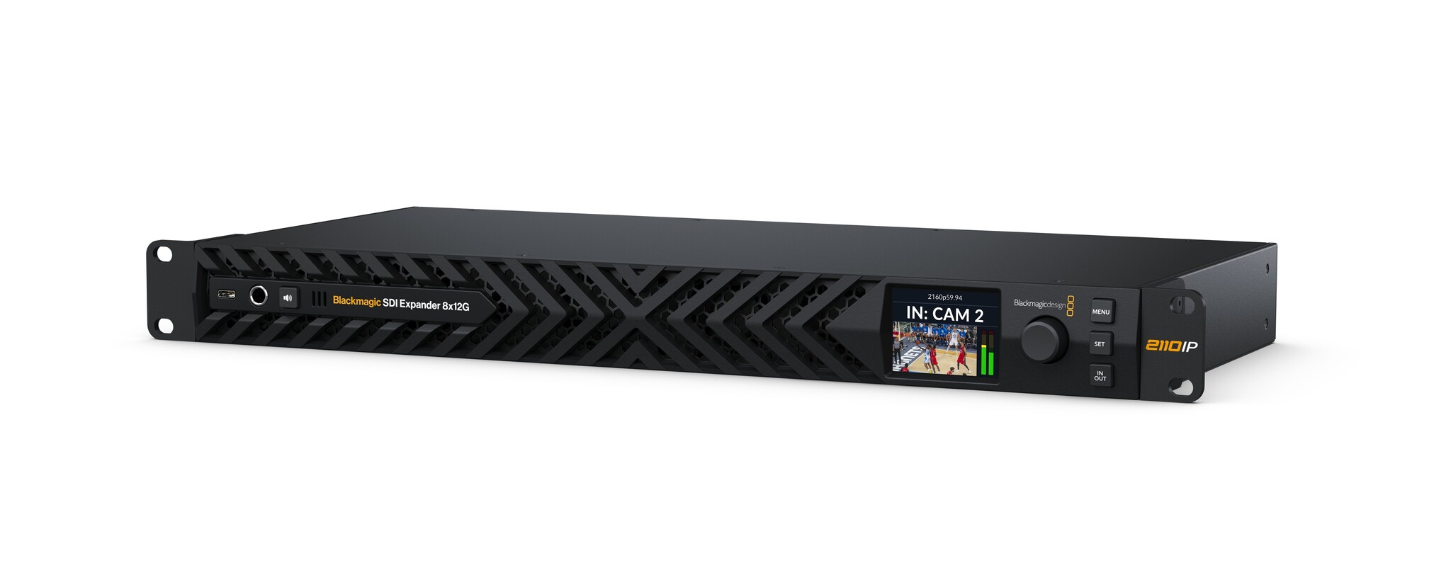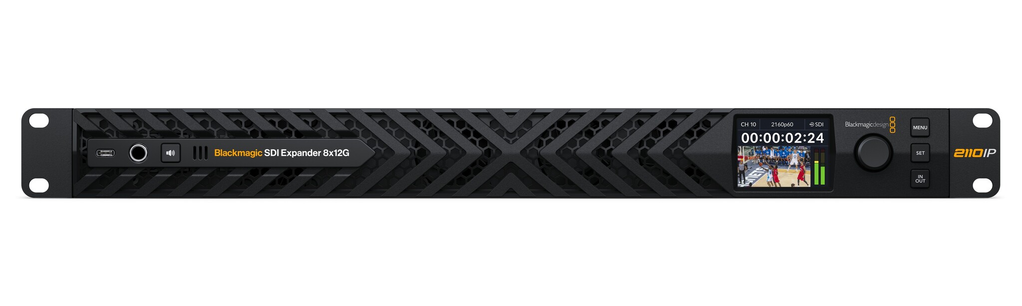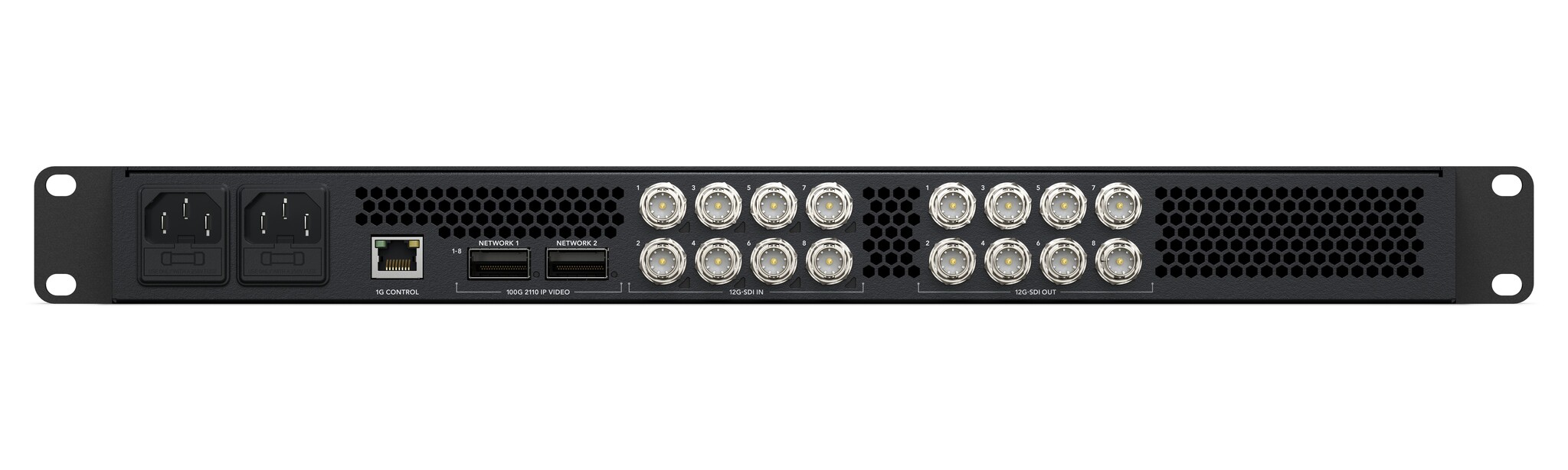 Blackmagic SDI Expander 8x12G converts in 2 directions at the same time! It converts 8 independent channels of 12G-SDI to SMPTE-2110, while simultaneously converting a separate set of 8 channels of SMPTE-2110 back to 12G-SDI. That's 16 channels of conversion in a single rack unit! The SMPTE-2110 connections use two 100G Ethernet ports for full SMPTE-2022-7 redundancy. There is also a separate NMOS control Ethernet port and dual redundant AC power supplies for reliable broadcast operation.