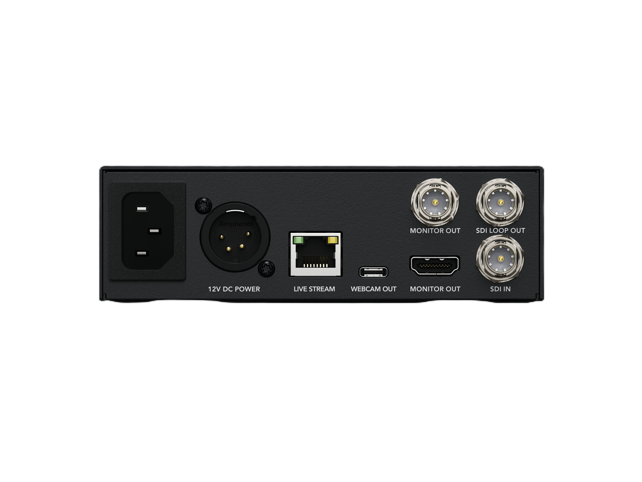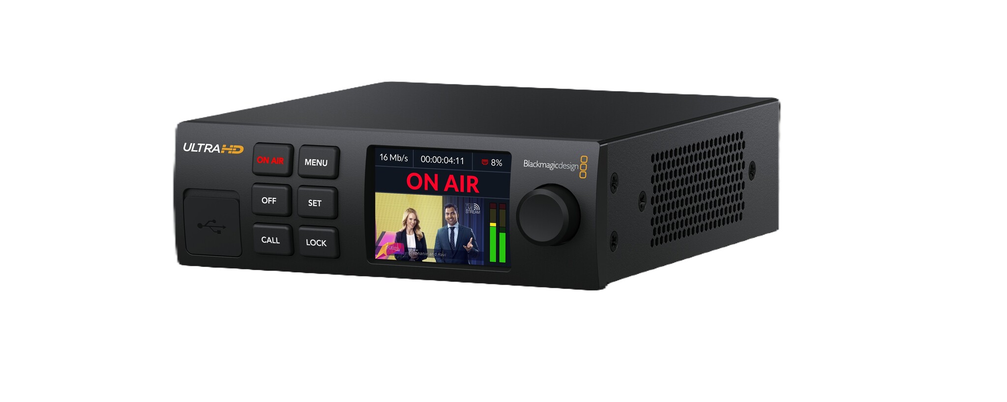 Blackmagic Streaming Encoder 4K is powerful self-contained streaming processor with H.264 and H.265 streaming in HD or Ultra HD via SRT or RTMP protocols. Stream directly to services such as YouTube, Facebook, X and more. Plus you can stream to the internet using Ethernet or connect a 5G or 4G phone to use mobile data. Includes USB webcam, standards converted 12G-SDI input and streaming monitoring output.