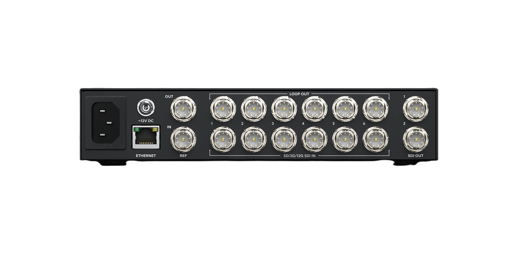 Automatically selects between 270Mb SD-SDI, 1.5G HD-SDI, 3G level A and level B HD-SDI, 6G HD-SDI and 12G-SDI on each input so that each input can be running a different television standard.