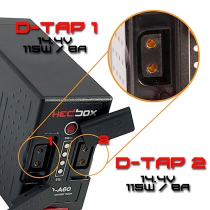 Hedbox HED-A60 Professional Battery Pack provides up to 96.5Wh / 6700mAh for CANON HD Camcorders like the C500 Mark II, C300 Mark II, C200, and XF750. The HED-A60 includes an external USB 5V/5W/1A power output, and a Dual D-Tap DC 14.4V power output, that can deliver 115W/8A for all professional external devices. Designed for professional filmmakers and camera operators the HED-A60 provides exceptionally long run times (approximately 7hrs) in a light-weight form while offering external power outputs through a USB 5V/1A socket and Dual D-Tap sockets capable of delivering 14.4V 95W/8A to all professional external devices such as monitor recorders and light panels.