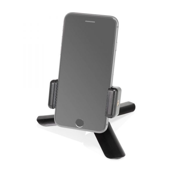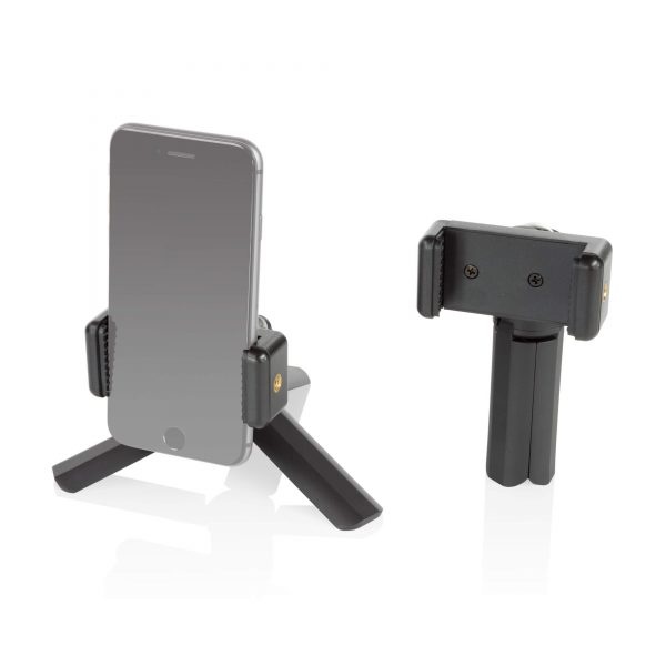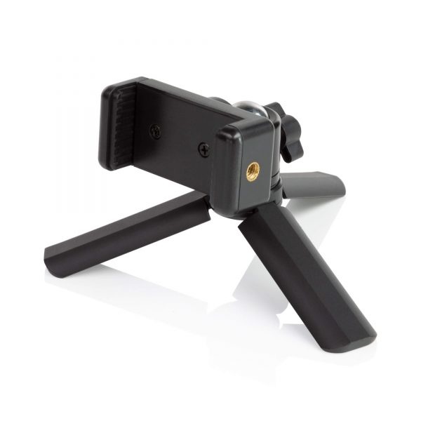 Compatible with iPhone, Android, and GoPro devices, the Smartphone Tripod and Selfie Grip with Ball Head from SHAPE works as a stable holder or an ergonomic grip. The universal smartphone clamp has two 1/4" threaded holes for mounting the grip or other accessories, and is also available as a standalone accessory. The flexible mini-ball head rotates 360° and supports vertical and landscape shooting. Together, this tripod/ball head combo allows users to capture videos, take selfies, and can be used with FaceTime or Skype.