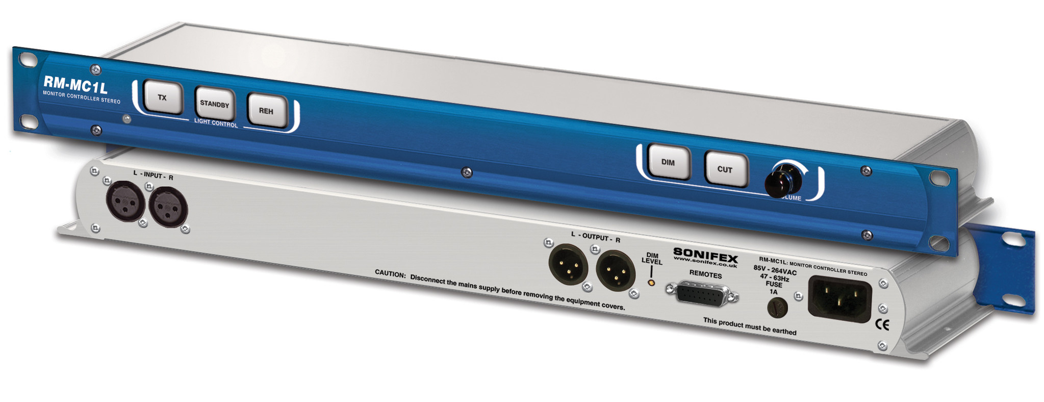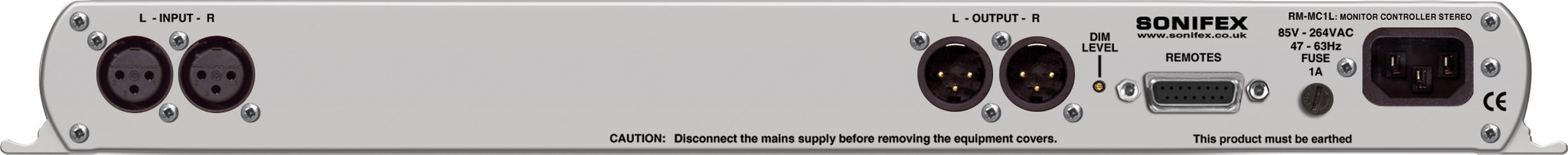 The RM-MC1L is a stereo unit with a single stereo balanced analogue input and output on XLRs. Useful in a production environment, the unit allows you to control the audio level to external monitors and to DIM the audio, or CUT it completely with simple front panel controls, or remote external inputs.