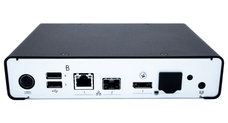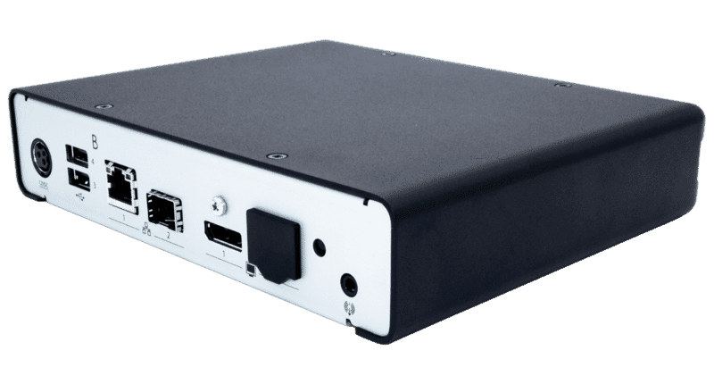 DisplayPort connectors, single-head digital video, audio, and USB2.0 over 1GbE IP network.