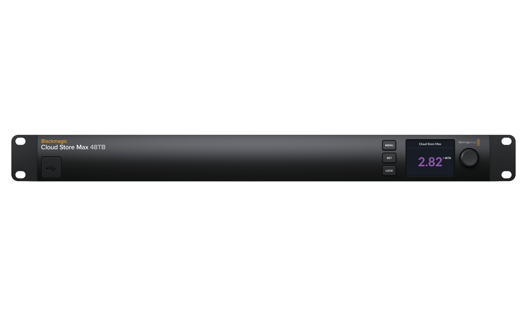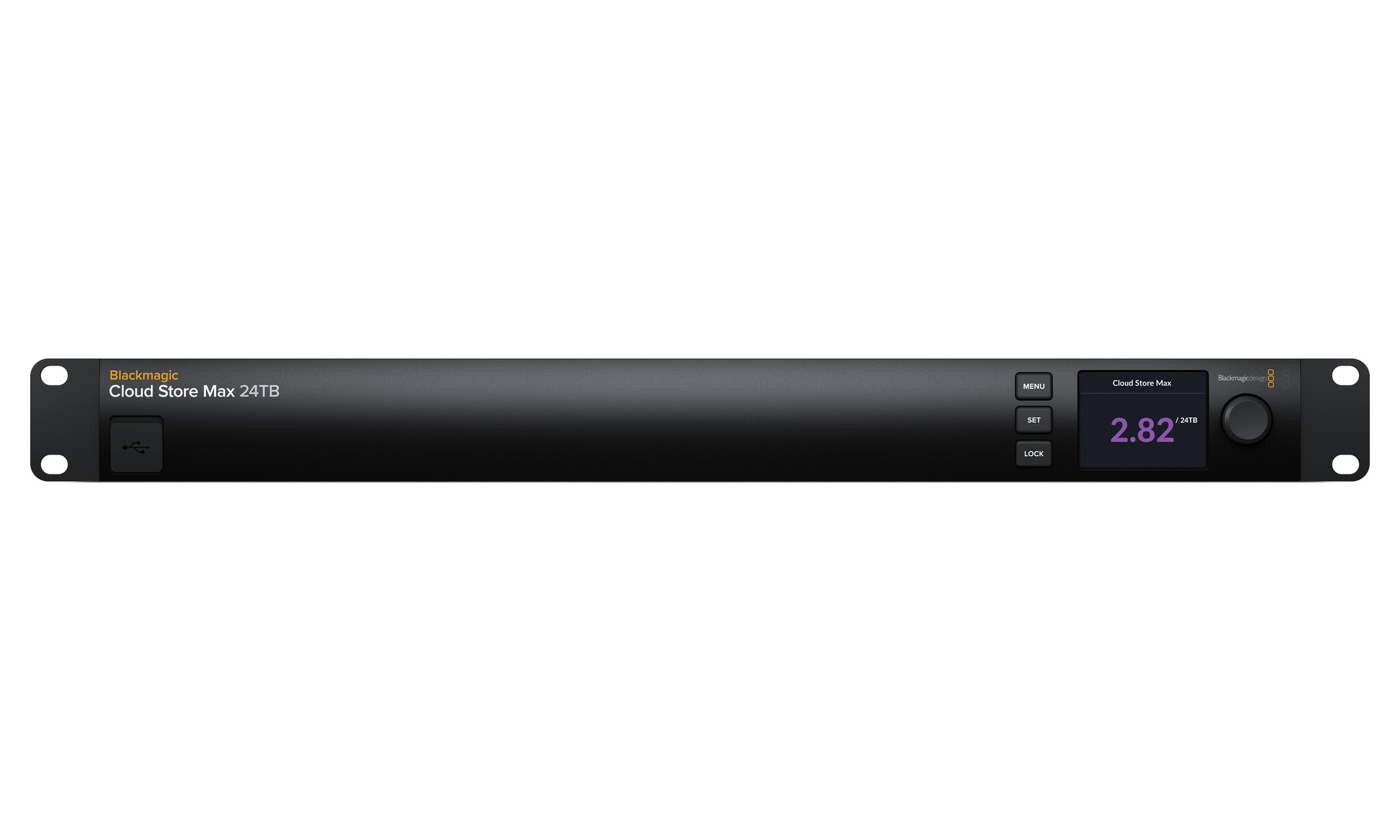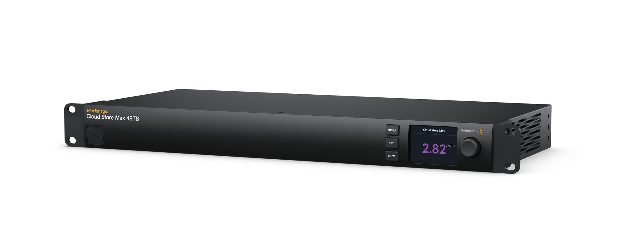 Blackmagic Cloud Store Max 24TB or 48TB is an extremely high performance flash storage solution in a compact 1RU design. Cloud Store Max features 24TB capacity 12 card RAID 0 flash memory core, 4 x 10G Ethernet, 100G Ethernet, QSFP connection for high speed copper cables or longer optical fiber cables, USB-C and Blackmagic Cloud sync for distributing files globally. It's fast, even with lots of simultaneous users all accessing files at the same time!