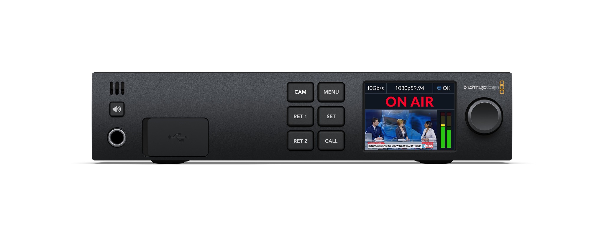 With 10G Ethernet on Blackmagic Studio Converter and Blackmagic Studio Camera 4K Pro, you can connect all camera signals using one Ethernet IP link connection. That means the camera feed, return program feed, timecode, reference, tally, talkback and control are all sent down the single cable. That's the same benefits of SMPTE fiber, but the standard 10G copper Ethernet cable is much lower cost. The Blackmagic Studio Converter allows breakout of all the video, audio and talkback connections at the studio end.It also includes a massive power supply that powers the camera down the Ethernet cable, so you don't even need a power source near the camera!