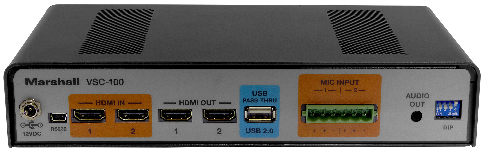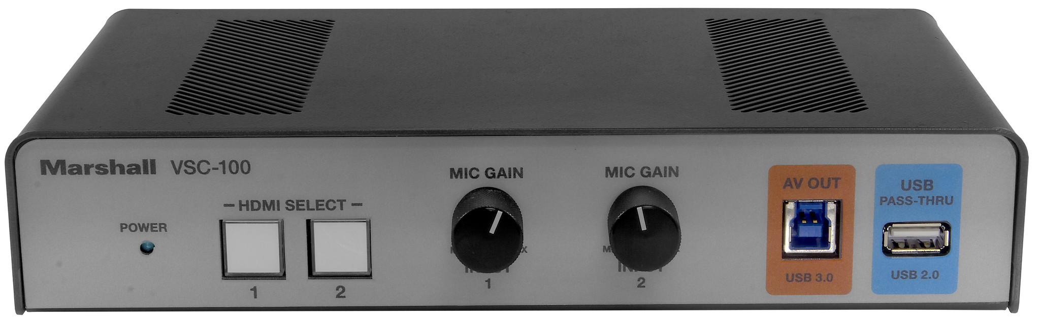 The Marshall VSC-100 AV UCC Consolidator Bridge easily connects HDMI video and professional audio sources to a computer for use in UCC, video production, and recording. Simple to use plug-and-play design coupled with a high-fidelity audio front-end makes integration a breeze.