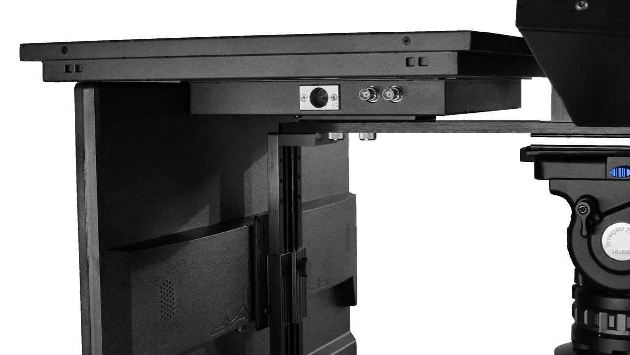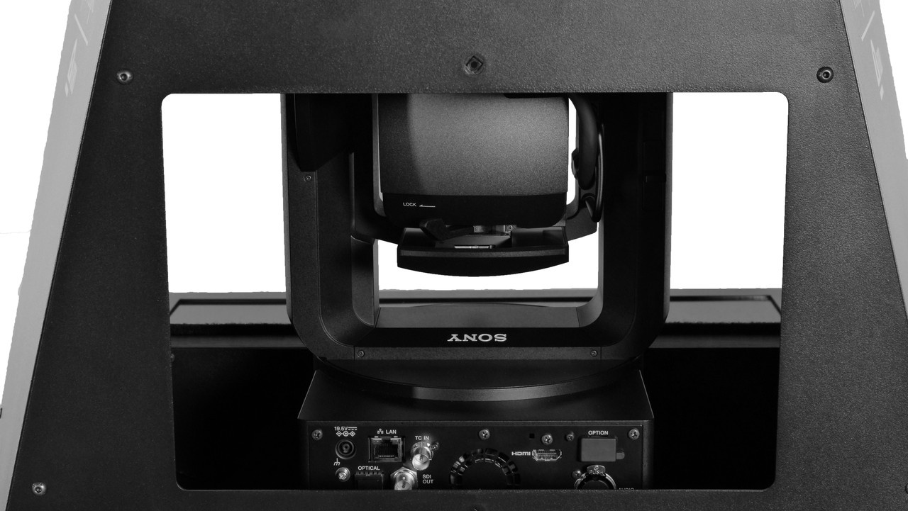 The Robo Prompter with the Talent Monitor Bracket is designed for today's self contained robotic cameras such as the Panasonic AW-UE150K UHD 4K 20x PTZ Camera AW-HE100 and Sony FR-7 PTZ Camera Models. The Robo Prompter completely encloses the robotic camera for unhindered camera movement while providing easy access to camera controls. The Robo Prompter's wide mirror frame allows wide panning of the camera for both standard Teleprompter use as well as PowerPoint prompting applications and tele-presence using Skype or VOIP. Provides a perfect eye line from presenter to remote viewer, perfect for remote studios, boardrooms and remote education.