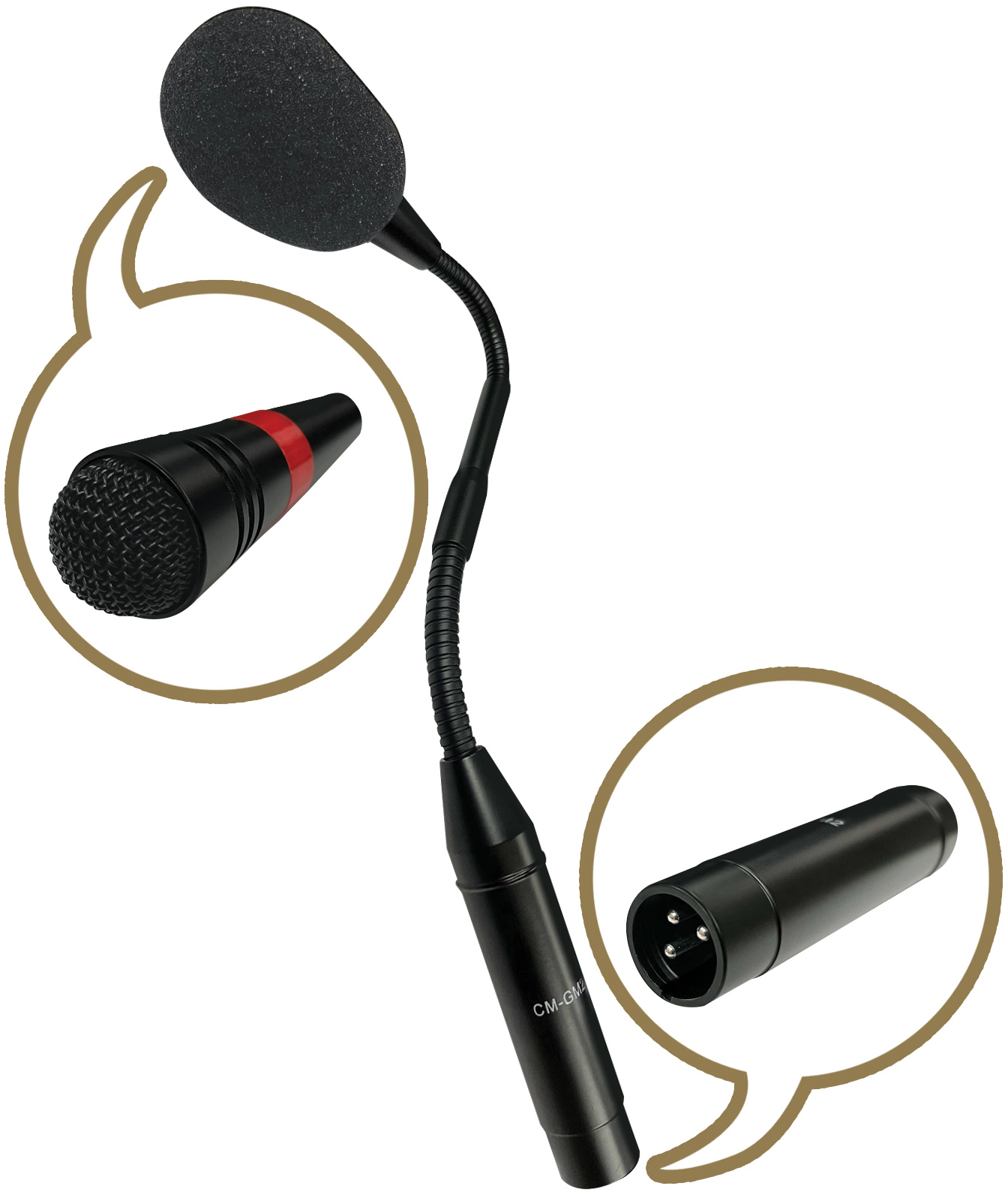 This is a professional gooseneck condenser microphone which has a back electret condenser element with an ultra-cardioid polar pattern.