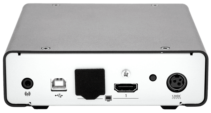 HDMI® connectors, single-head digital video, audio, and USB2.0 over 1GbE IP network.