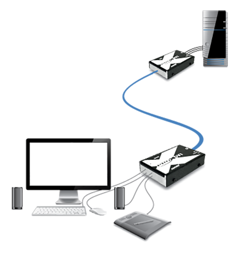 - Exact content seen on the local monitor is distributed: up to 50m over a single CATx cable
