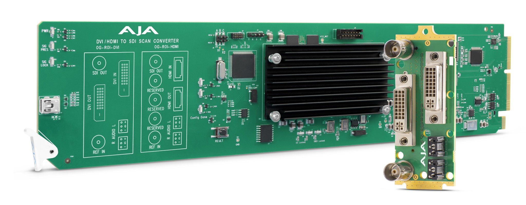 AJA's OG-ROI-DVI is an openGear card that allows exceptionally high-quality conversion of computer and DVI signals to 3G-SDI baseband video. With incredible region-of-interest image scaling as well as aspect and frame rate conversion, OG-ROI-DVI fulfills the growing need to properly incorporate computer signals into the video world without sacrificing budget or space.