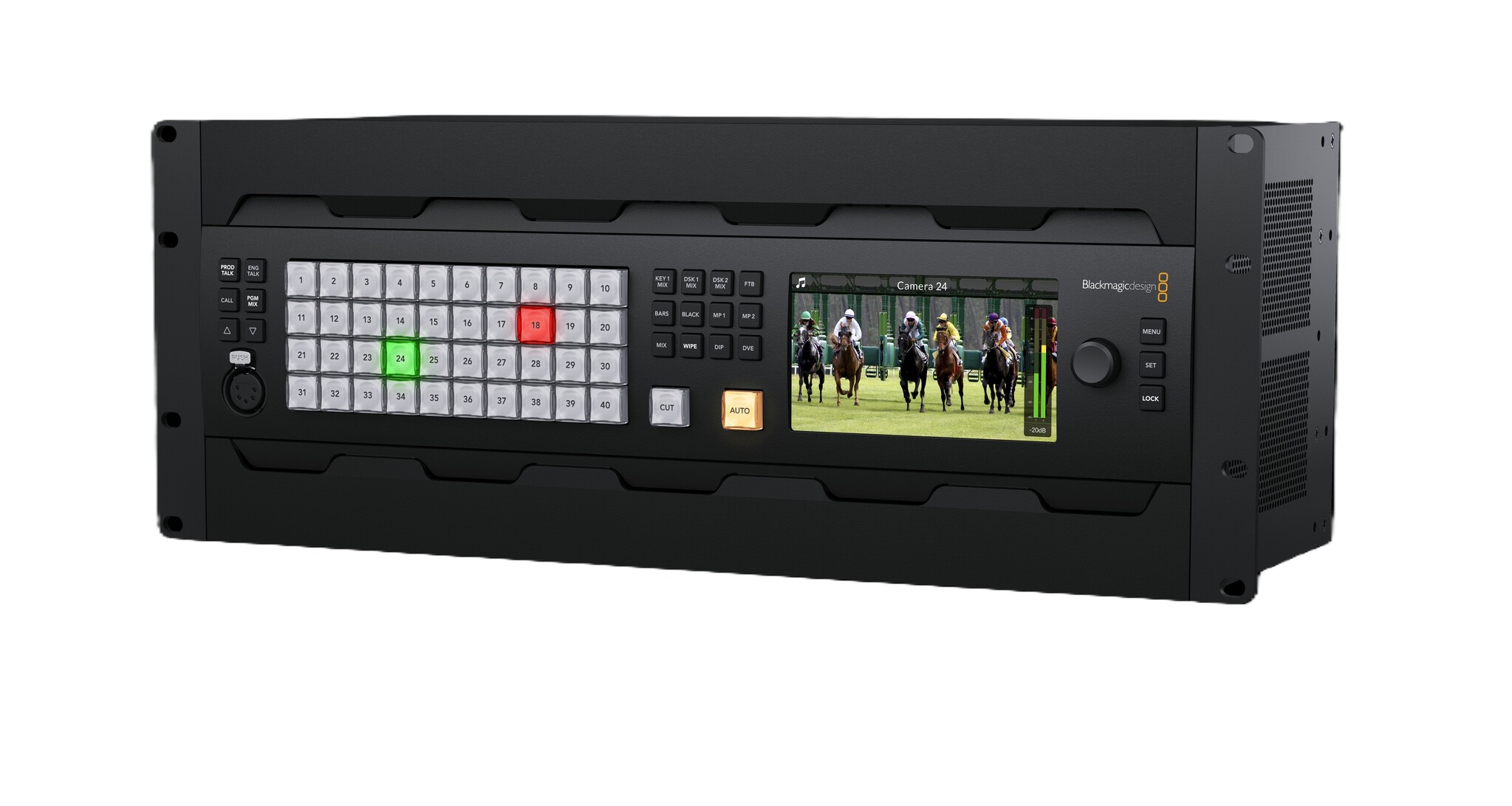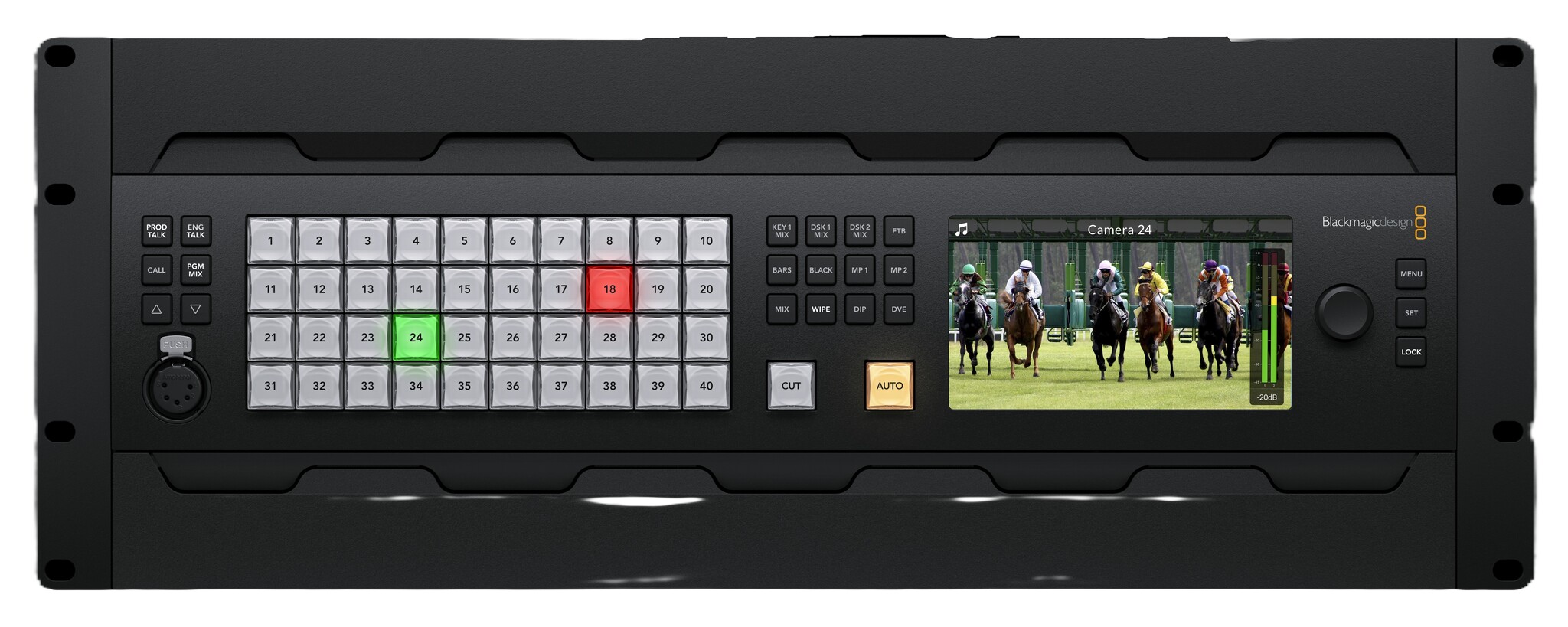ATEM 4 M/E Constellation 4K Plus is a massive 4 M/E Ultra HD live production switcher. It features 80 standards converted 12G-SDI inputs, 48 12G-SDI aux outputs, 4 DVEs, 16 ATEM Advanced Chroma Keyers, 4 media players, 4 independent Ultra HD multi-views, 2 SuperSource processors and more. You even get built in talkback and a professional 156 channel Fairlight audio mixer with EQ and dynamics!