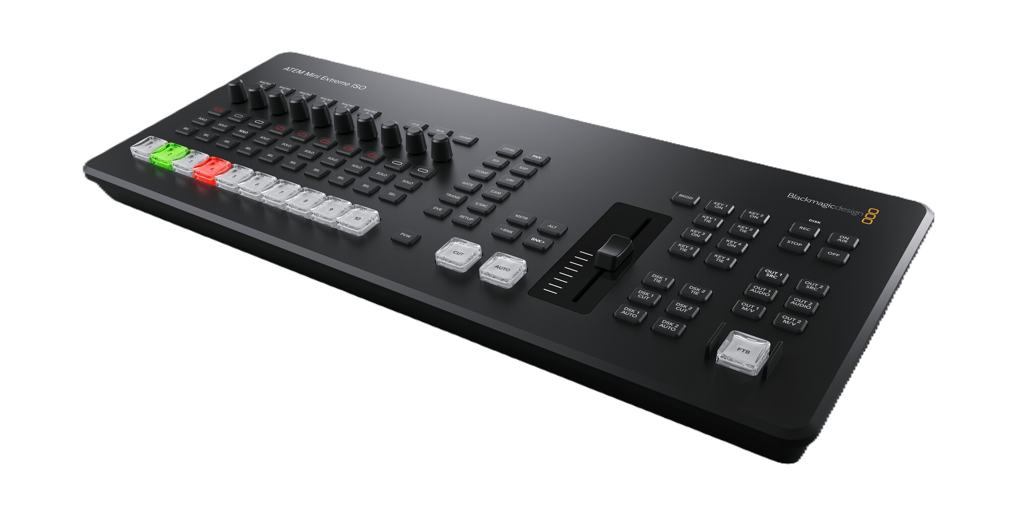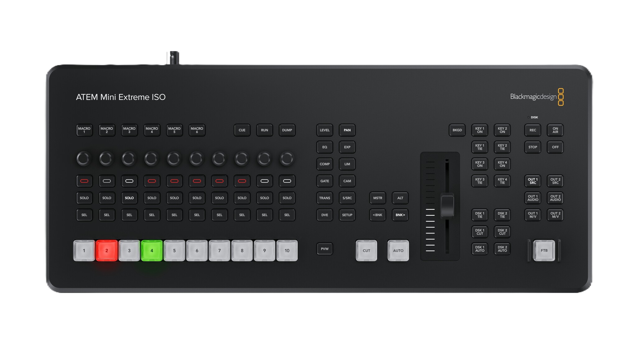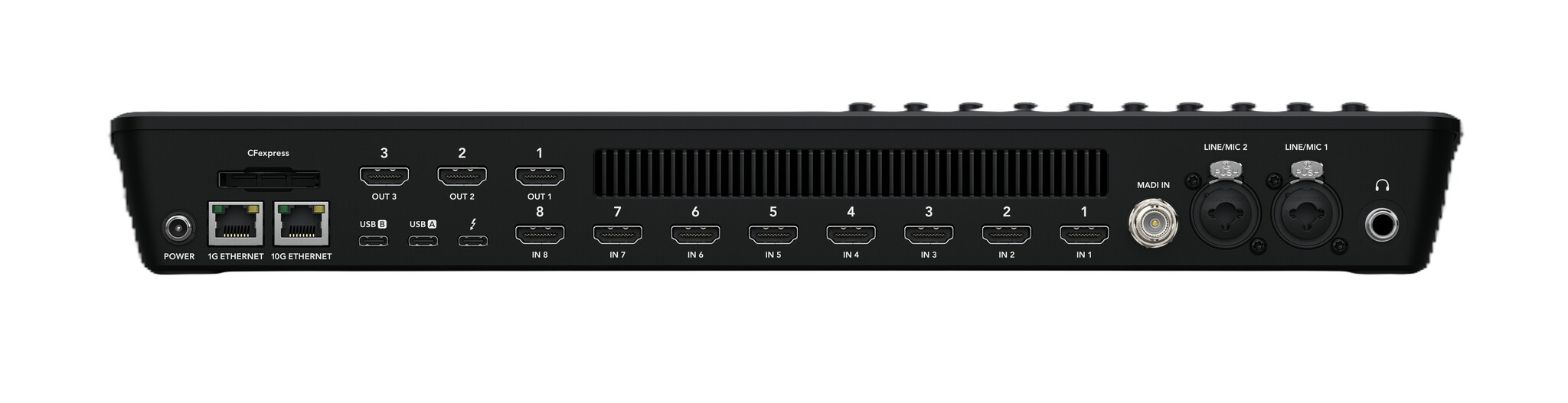 ATEM Mini Extreme ISO G2 is a powerful yet compact live switcher for building a high-end broadcast studio. Get an expanded professional style control panel with built in streaming, 8 standards converted HDMI inputs, 3 independent HDMI outputs, built in streaming engine, multi-view, CFexpress and Thunderbolt for record/playback. There is also 10G Ethernet for fast network storage access, XLR audio inputs, USB webcam, DVE, chroma key, media player and ISO recording of all 8 video inputs.