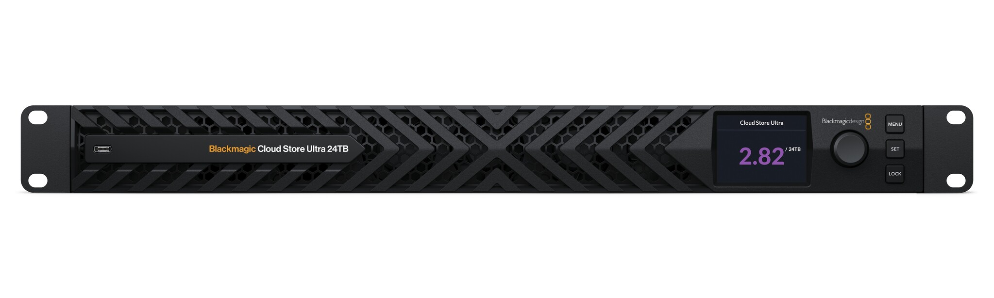 Blackmagic Cloud Store Ultra 24TB is an extremely high-performance network storage solution in a compact 1RU design with server-style front-to-rear cooling. Cloud Store Ultra features 24TB capacity 12-card RAID 0 flash memory core, 2 x 100G Ethernet ports, RAID 5 support for data protection, two redundant power supplies, USB-C and Blackmagic Cloud Sync for distributing files globally. It’s fast, even with lots of simultaneous users all accessing files at the same time.