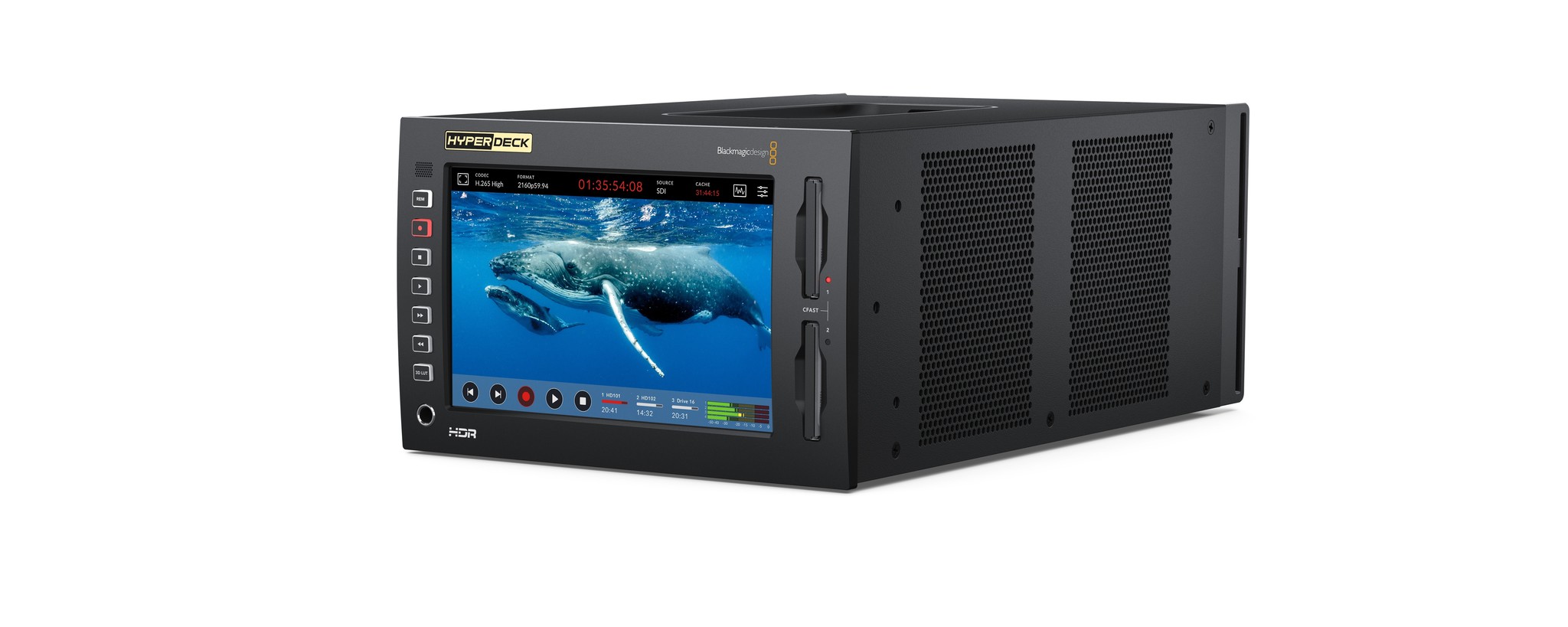 HyperDeck Extreme 4K HDR features the trusted reliability of HyperDeck combined with new innovations such as space saving H.265 files, optional internal cache, 3D LUTs and HDR support! With the ability to record up to native 4K in H.265, you get reduced storage costs and amazing image quality. The large touch screen ensures a perfect view of your recording as well as control over all deck settings.