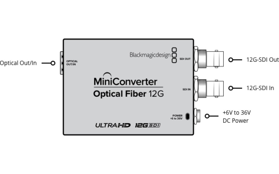 Mini Converter Optical Fiber 12G converts SDI to optical fiber and optical fiber to SDI in both directions at the same time, you can even have different video standards going in each direction! The 12G-SDI connections are multi rate, which makes it compatible with all SD, HD and Ultra HD formats and equipment up to 2160p60, including Level A and B devices. You can install any standard 3G, 6G or 12G-SDI SFP optical fiber module so you can send SDI using the same low cost optical fiber cables that are commonly used for computer networks.