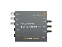Mini Converter SDI to Analog 4K includes everything you need to convert from SD, HD, 3G and 6G-SDI video to analog in HD/SD component, NTSC and PAL video. The built in down converter means you can even connect Ultra HD sources to component video in SD or HD as well as NTSC and PAL video! Easily connect any analog equipment such as Betacam SP, VHS, and video monitors!