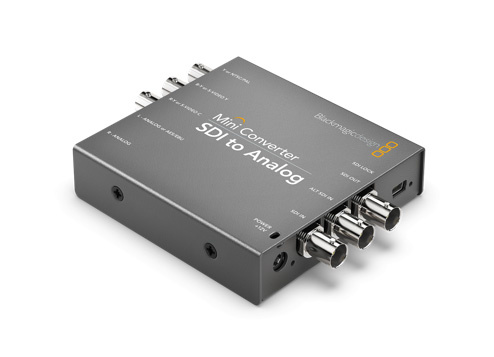 The perfect way to convert from SD and HD-SDI to analog component, s-video or NTSC/PAL composite. Mini Converter SDI to analog supports all SD and HD input formats up to 1080p30 and includes a down converter for when you need to convert from HD to standard definition analog formats such as s-video and composite. Audio can be de-embedded to balanced analog or AES/EBU. Mini Converter SDI to Analog is ideal for converting to older analog equipment when you don"t need the extra cost of the 6G-SDI 4K model.