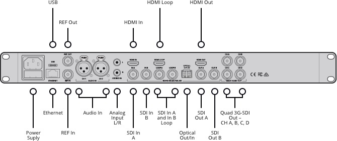 1x BNC (IN A) - 10-bit SD, HD, 2K, 3G HD levels A and B, 6G and 12G Ultra HD auto switching.