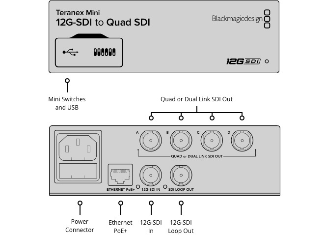 Convert 12G-SDI to Quad Link SDI so you can connect the latest 12G-SDI Ultra HD equipment with Quad Link Ultra HD equipment. Also allows Ultra HD SDI to be separated into four HD SDI outputs for using regular HD displays for creating video wall style displays. Includes 12G-SDI loop through and support for both Level A and Level B 3G-SDI equipment.