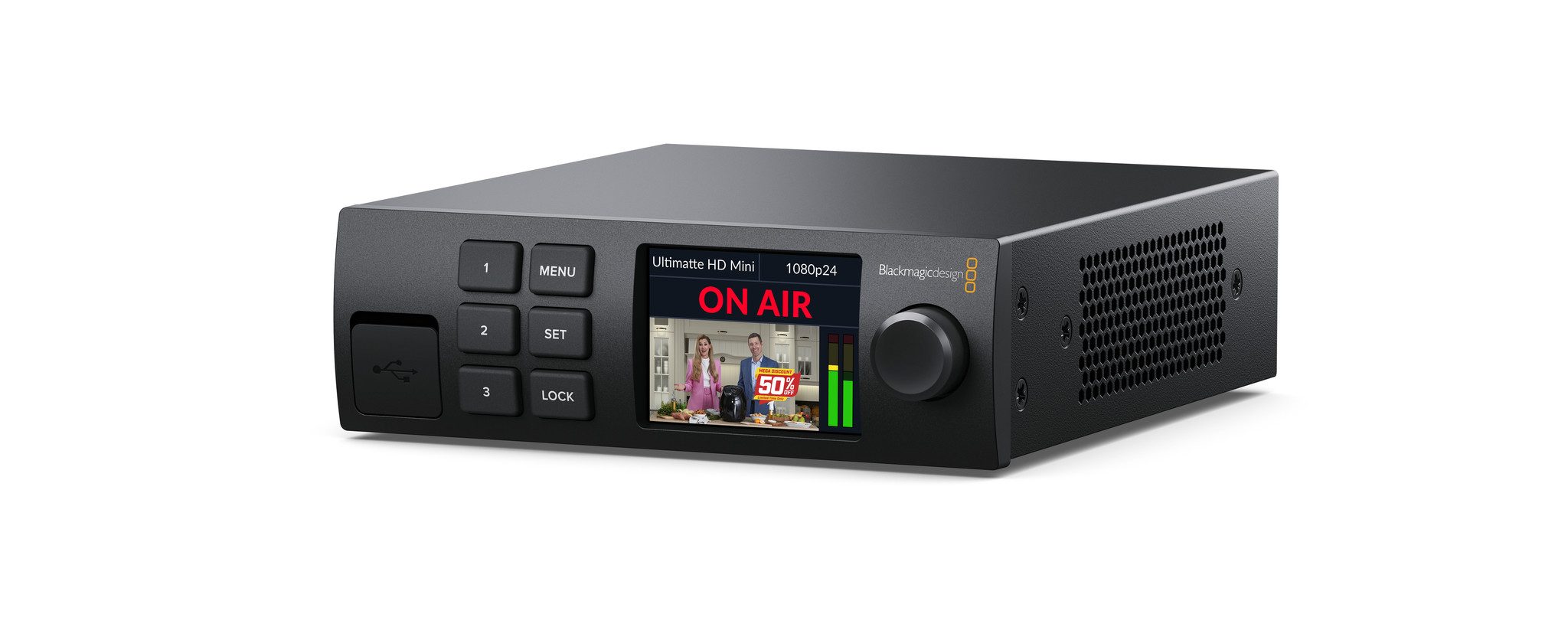Ultimatte 12 HD Mini is an advanced real time keyer designed for creating next generation virtual sets and more with consumer cameras. The HDMI connections are perfect for use with Blackmagic Studio Cameras, Pocket Cinema Cameras and ATEM Mini live production switchers. Plus there's a massive 6 GB frame store for realistic fixed camera virtual sets from pre rendered still frames. Ultimatte 12 HD Mini features broadcast quality algorithms and color science to deliver photorealistic composites.
