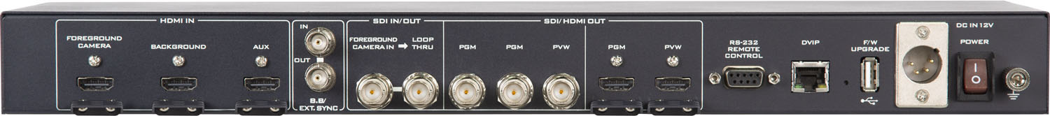 DVK-400 is a professional broadcast grade live chromakey processor that works with resolutions up to 2160p60. This real-time chromakey processor provides 4:4:4 10-bit internal processing for the best results.