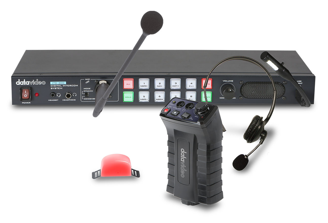 The Datavideo ITC-300 Digital Intercom System is an 8-channel wired communication system, allowing direct connections of up to 8 belt packs. With the ITC-300, the director will then be able to speak to the team crews located at different sites either simultaneously or individually.