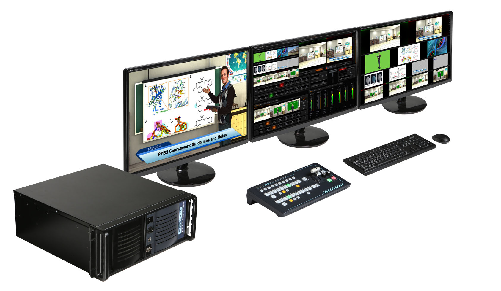 5 in 1 design which consists of a trackless virtual studio system, video switcher, character generator, video recorder and web streaming encoder. It's a versatile, easy to use and cost-effective solution.