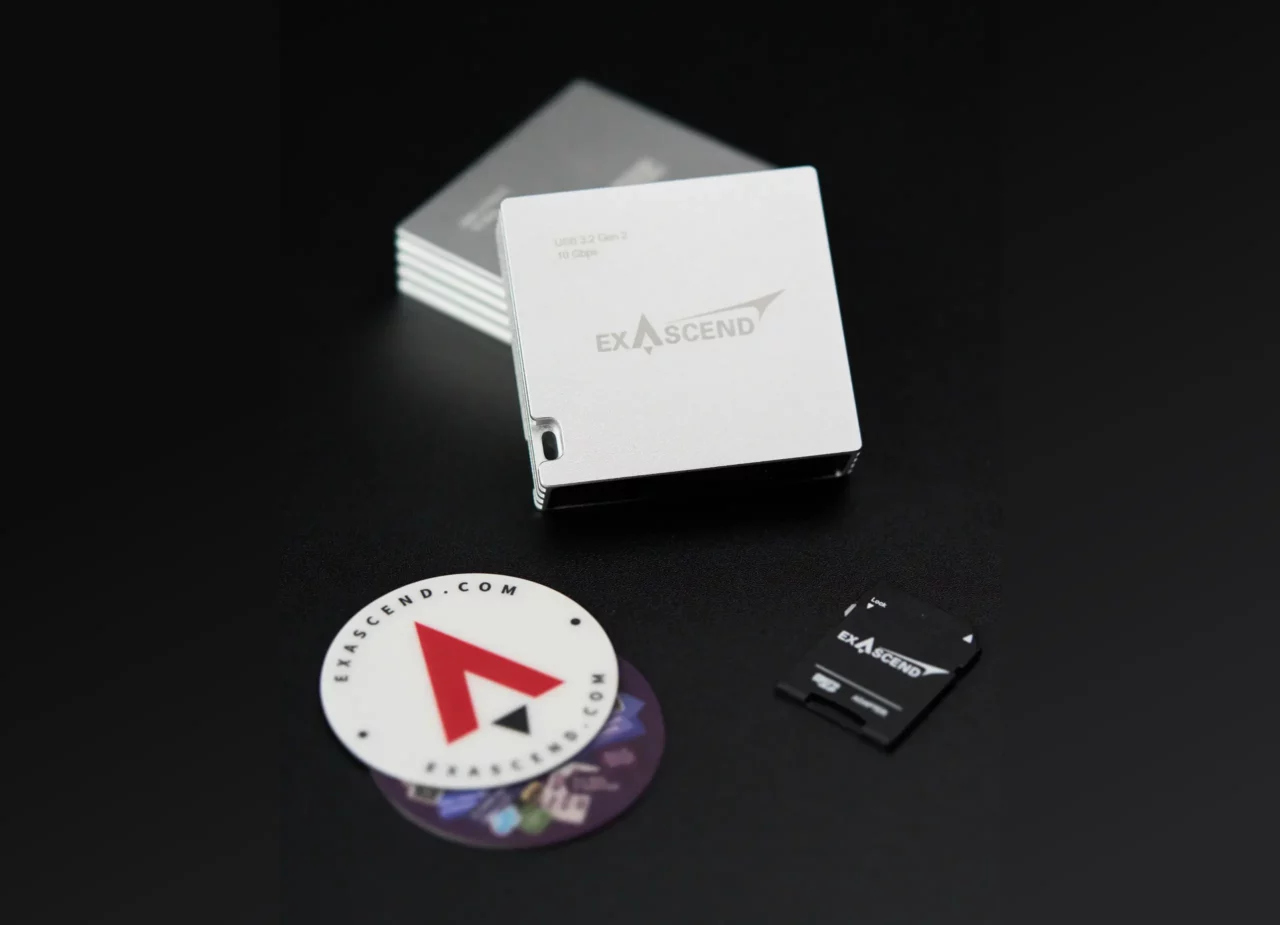 Introducing Exascend's Essential 4-in-1 multi-slot card reader. It includes multiple card slots, a microSD to SD adapter, and two metal stickers, so you can magnetically attach it to your phone or PC.