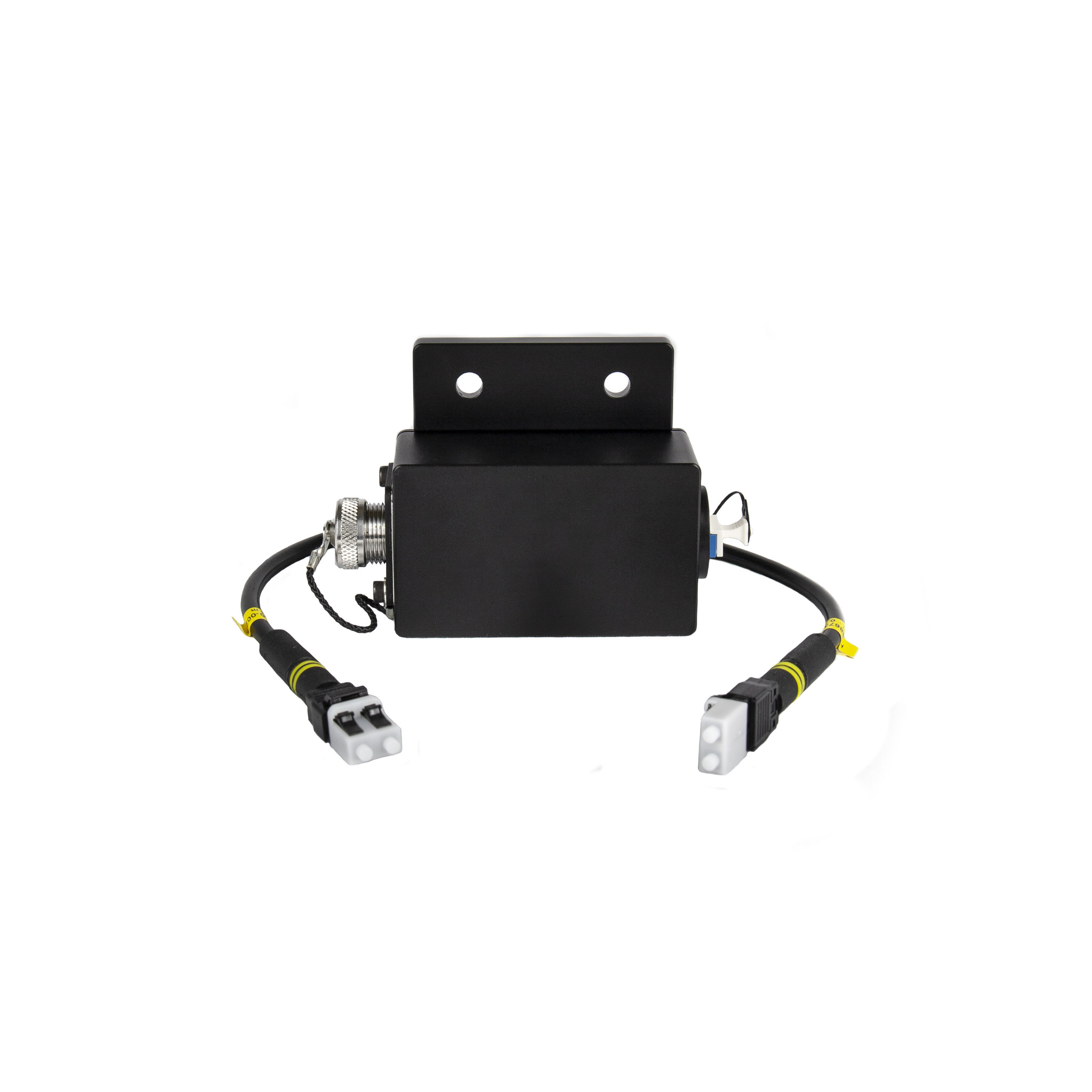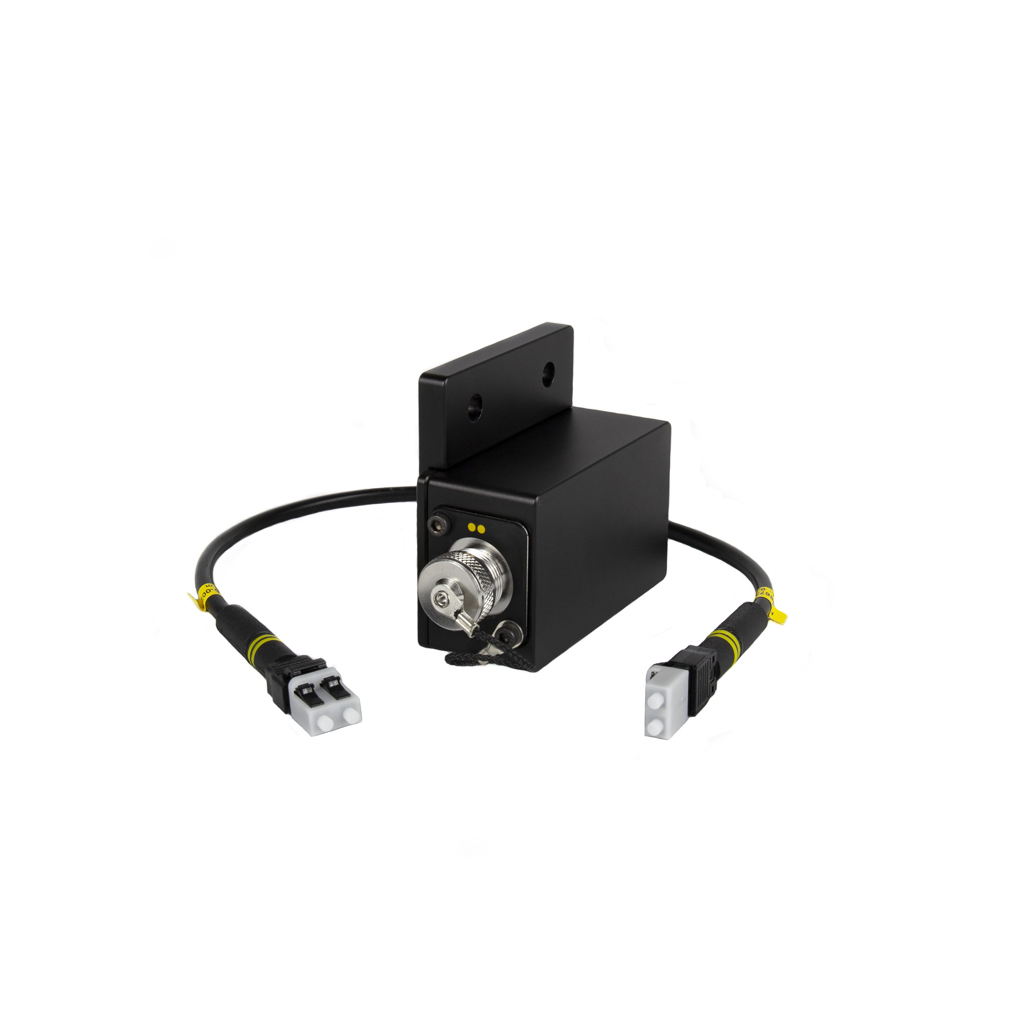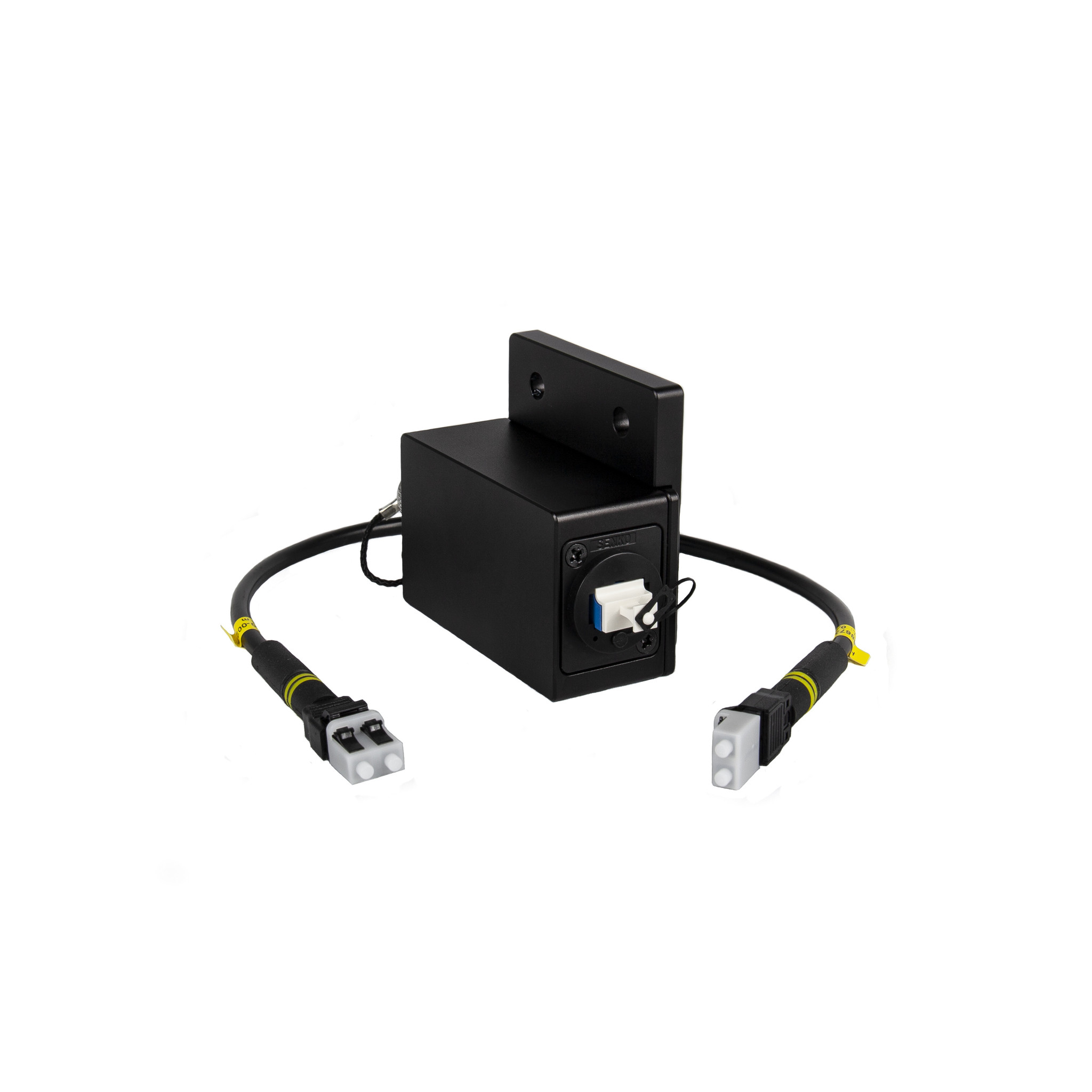 Adapter Two bridges the gap between FieldCast fiber optic cable assemblies and Blackmagic Design Studio Camera. It directly mounts to the side of the camera body and connects to the camera SFP with a short and flexible black LC Duplex bridging cable.