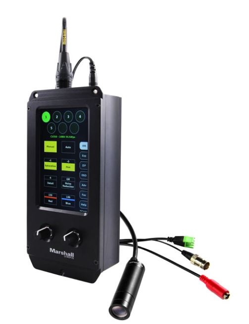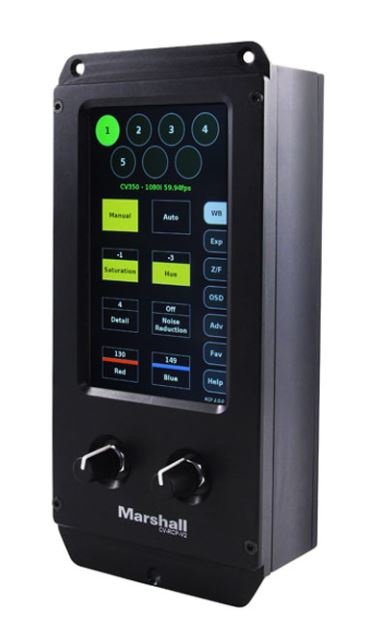 The new 5-inch Touchscreen RCP Camera Control unit allows for remote operation of up to seven Marshall Mini & Compact cameras. It features intuitive touchscreen control with user-friendly, fine-tune adjustment dials for quick changes on the fly.
