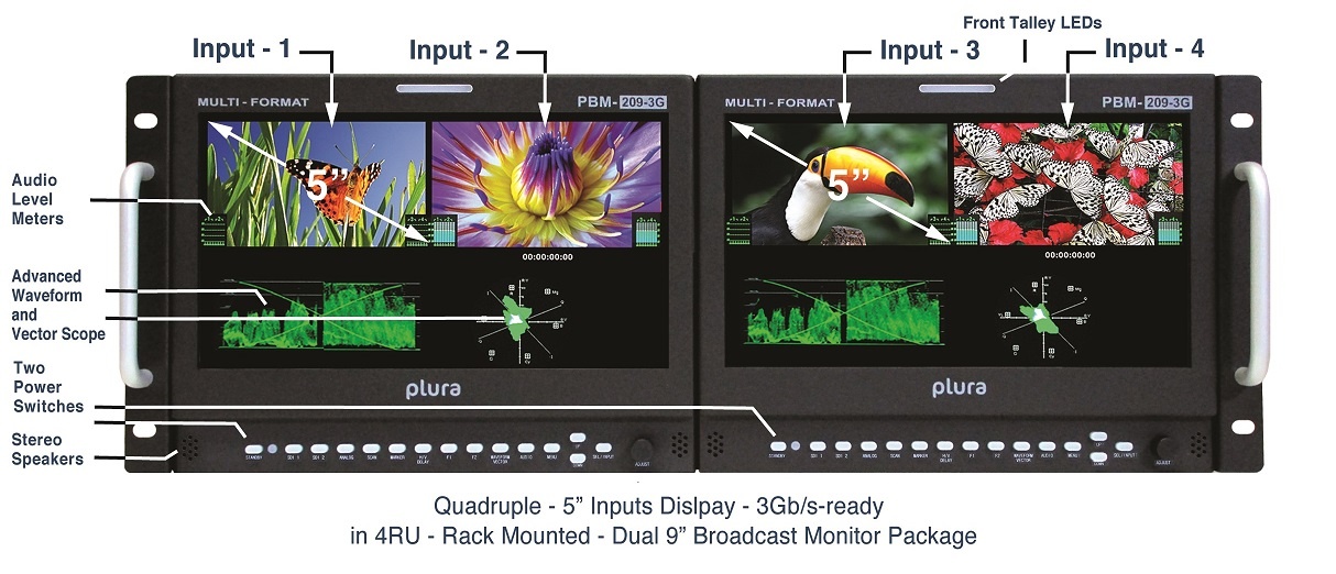 Plura PHB-209DRK-3G Dual 9" High Brightness Rack-Mountable Monitor
