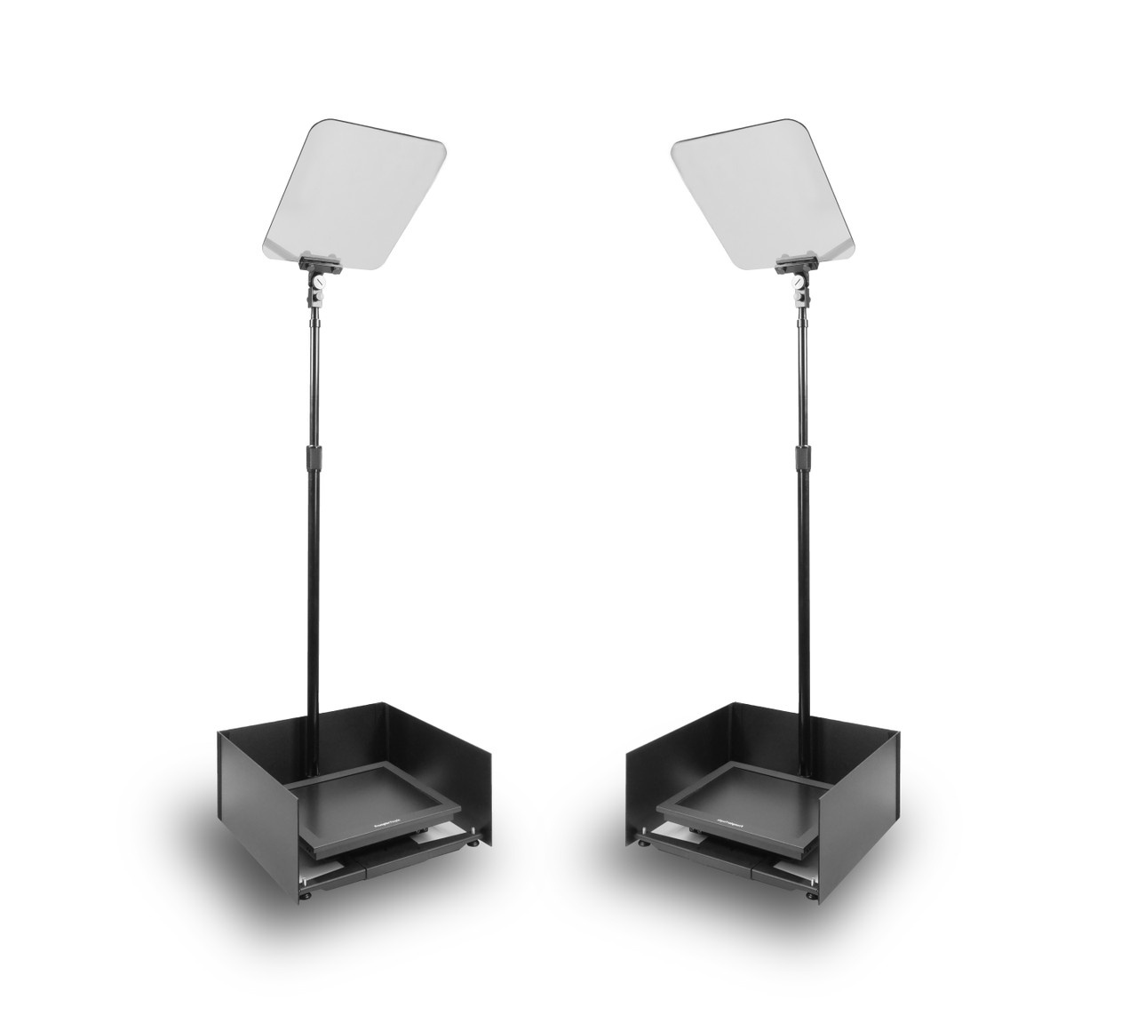 The StagePro Presidential Pair are ultra adjustable with easy, tool-less set-up. The monitor is self-reversing and can display prompting with either the included PC and Mac software or with any presentation software such as PowerPoint or Keynote.