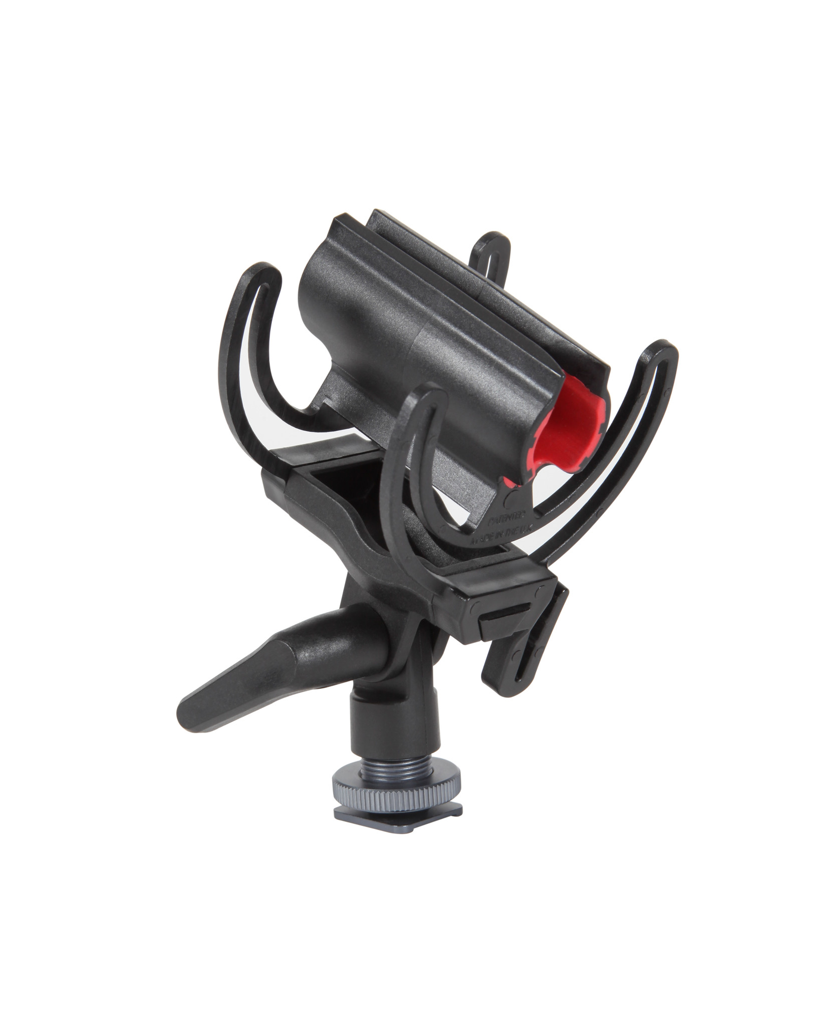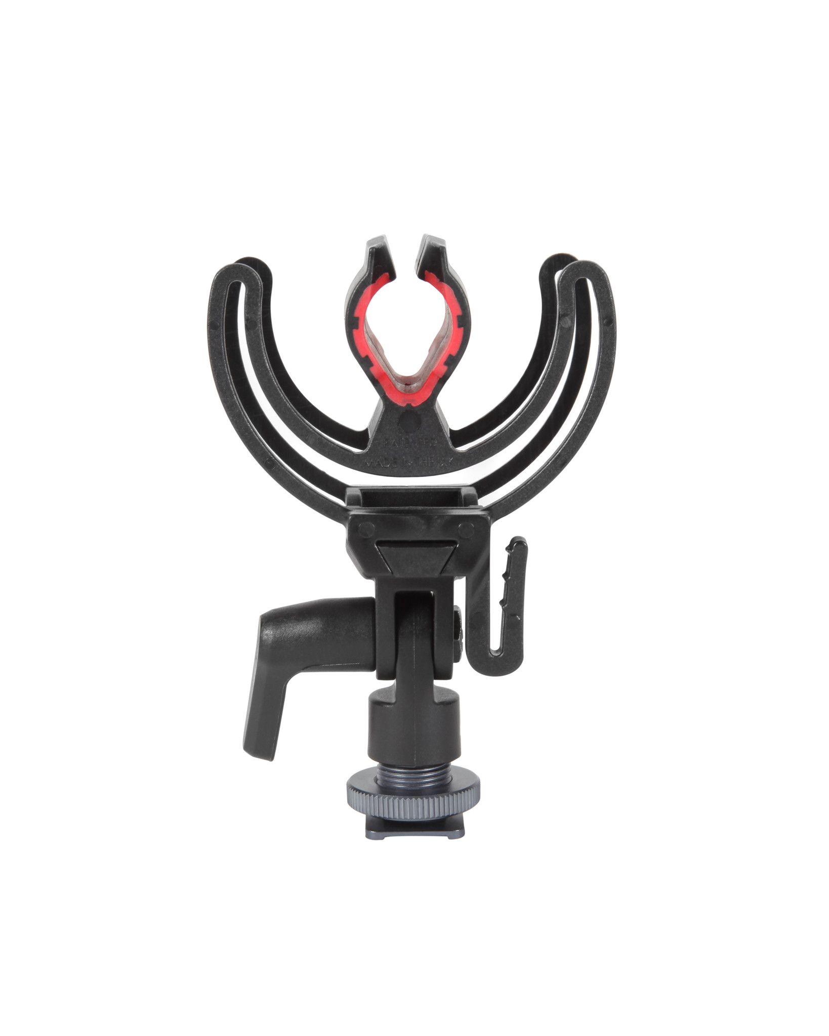 The InVision® On Camera shock mount is designed specifically for mounting to a camera using the shoe mount or to attach to a 3/8" boom pole. Utilising the Rycote patented Lyre® technology the Duo-Lyre shock mount not only securely holds the microphone due to its special soft-grip inner moulded clip, it also has excellent protection against shock and handling noise with substantial improvement over traditional rigid on-camera microphone mounts. The height of the mount is designed to allow for the microphone and windshield to be above the lens, keeping it out of shot and away from the grinding noises of the lens.
