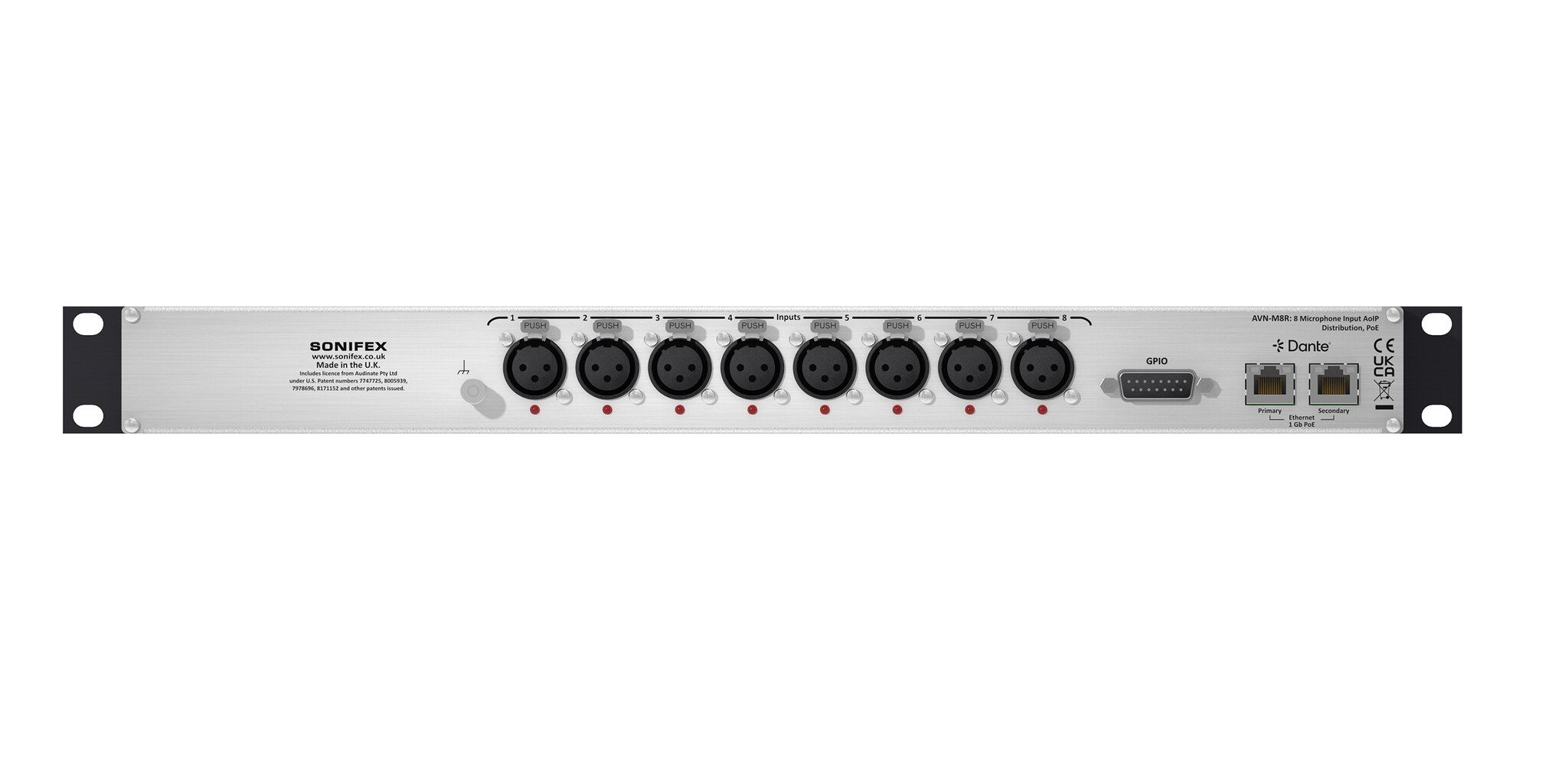 Sonifex AVN-M8R 8 Mic/Line Input Dante Interface, Dual PoE