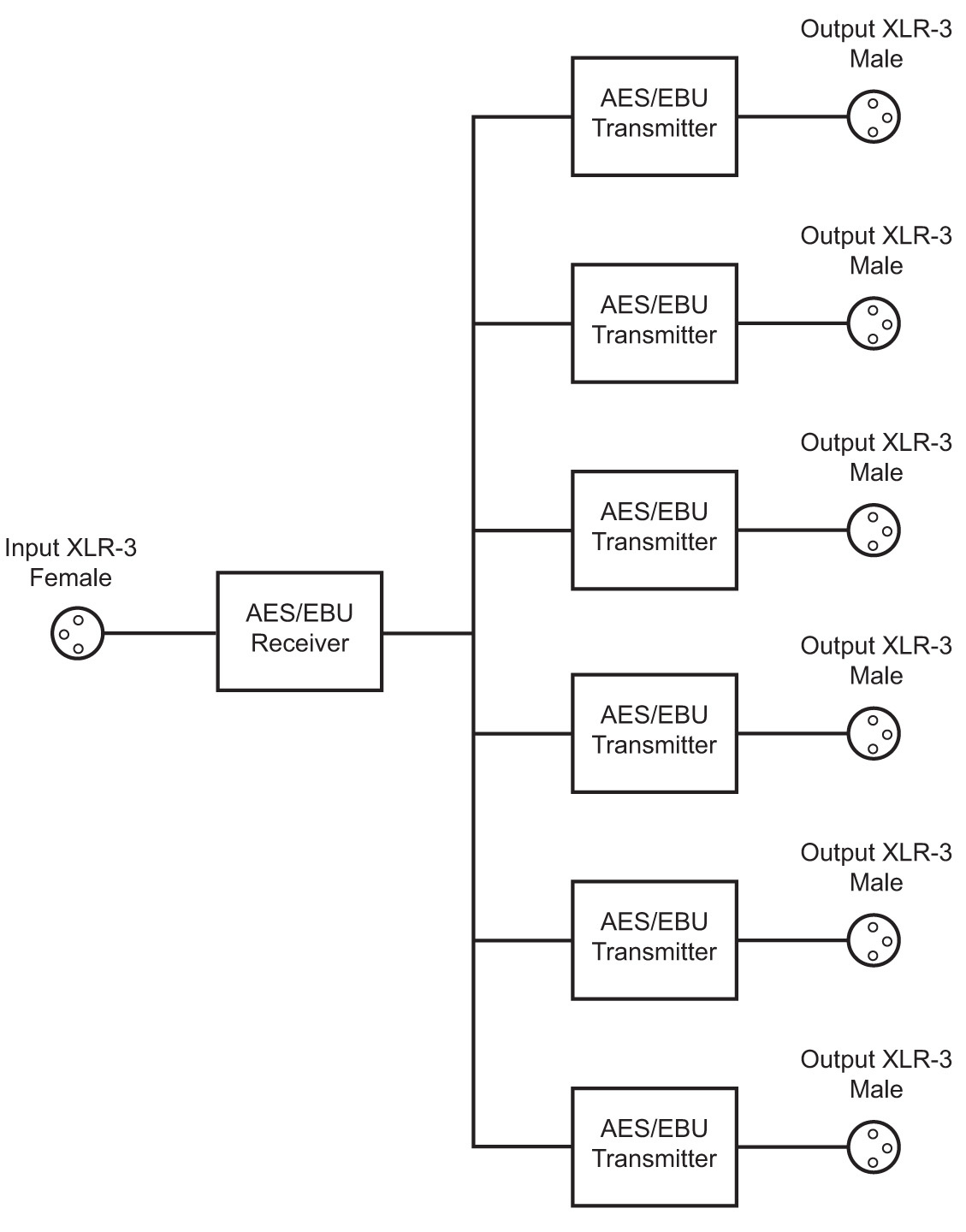 Applications include distributing audio from a digital mixing desk to multiple digital recorders, or feeding multiple studios with an output from a DAT machine.