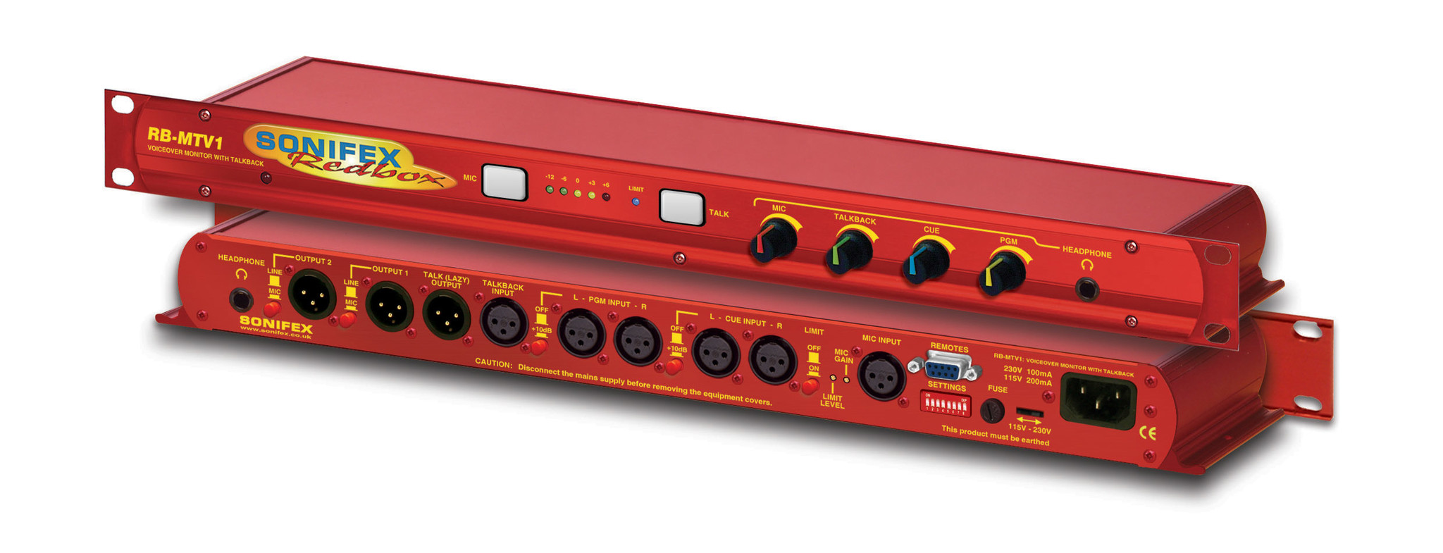 The RB-MTV1 contribution voiceover monitor is a 1U rack-mount designed to be used in voice-over booths, news booths, commentary locations, for continuity announcements and for any other similar applications where voice needs to be added to programme content and then monitored. Programme feeds, auxiliary feeds and a talkback feed can be taken and monitored.