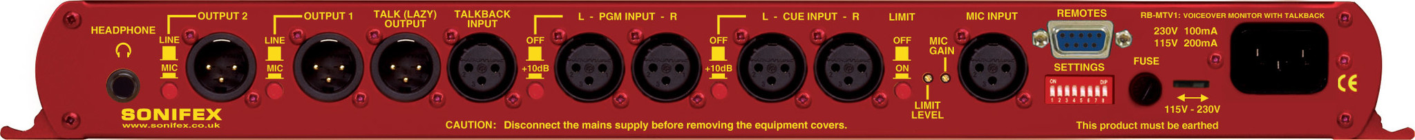 There is a rear panel remotes connector giving remote control of the two front panel MIC and TALK buttons and opto-isolated tallies of their status. A red LED on the front panel of the unit indicates when power is present.